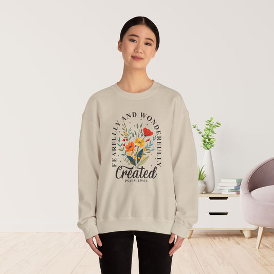 Fearfully and Wonderfully Created Psalm 139:14 Sweatshirt - Christian Mom Sweatshirt