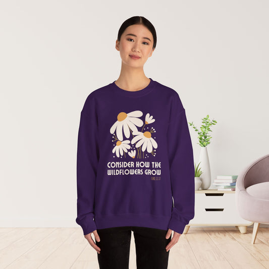 Consider How The Wildflowers Grow Luke 12:27 Bible Verse Sweatshirt