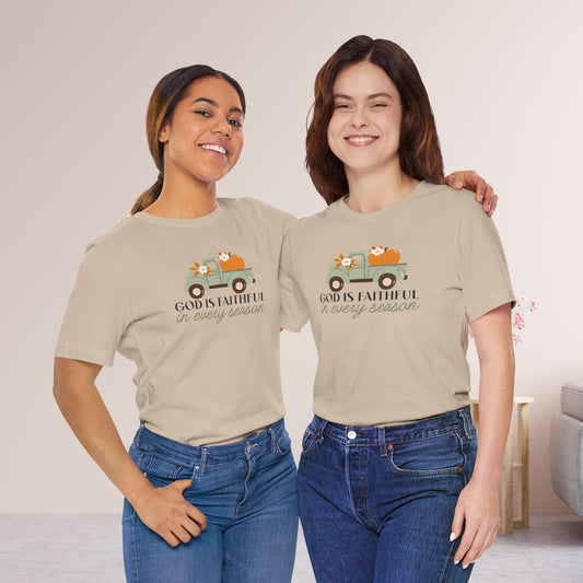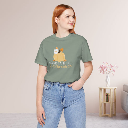 God is Faithful in Every Season Soft Cotton Tee - Fall Christian Tee