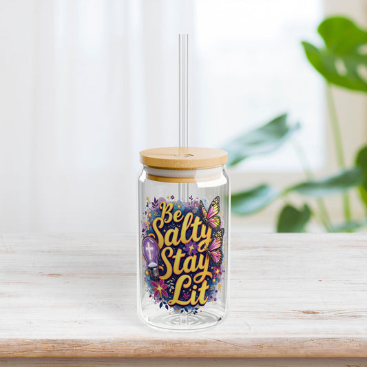 Be Salty Stay Lit Sipper Glass with Bamboo Lid & Straw - 16 oz