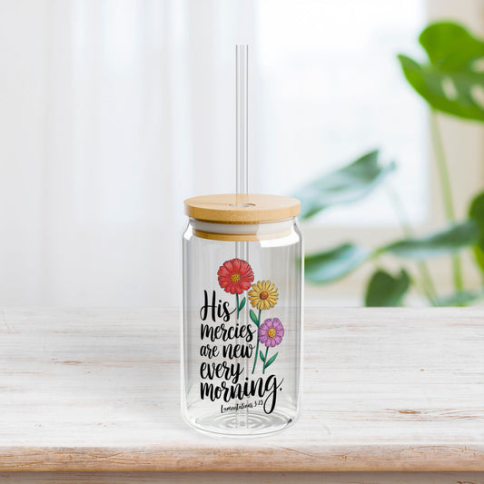 His Mercies Are New Every Morning Sipper Glass with Bamboo Lid & Straw - 16 oz