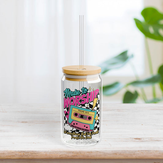 Made to Worship Sipper Glass with Bamboo Lid & Straw - 16 oz