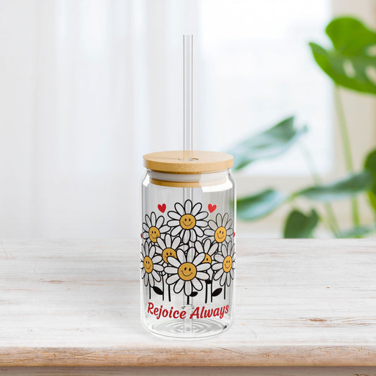 Rejoice Always Sipper Glass with Bamboo Lid & Straw - 16 oz