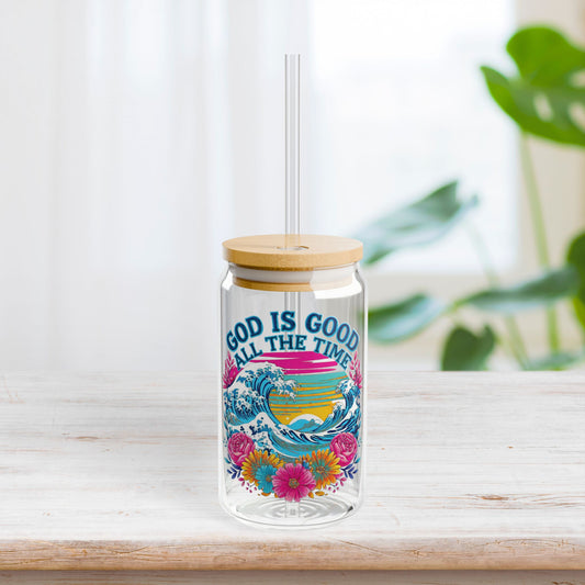 God is Good All The Time Sipper Glass with Bamboo Lid & Straw - 16 oz