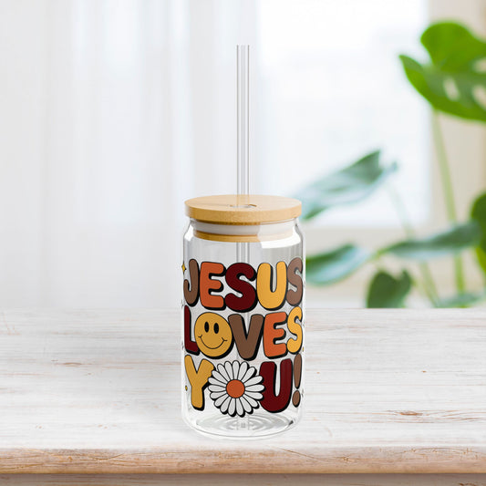 Jesus Loves You Sipper Glass with Bamboo Lid & Straw - 16 oz
