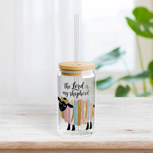 The Lord is My Shepherd Sipper Glass with Bamboo Lid & Straw - 16 oz