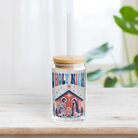 O Holy Night Sipper Glass with Bamboo Lid & Straw - 16 oz