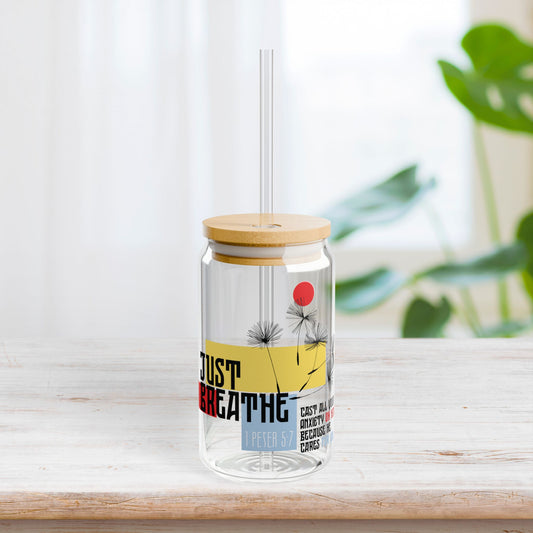 Just Breathe Sipper Glass with Bamboo Lid & Straw - 16 oz