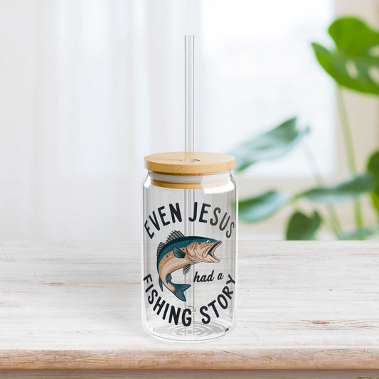 Even Jesus Had a Fishing Story Sipper Glass with Bamboo Lid & Straw - 16 oz