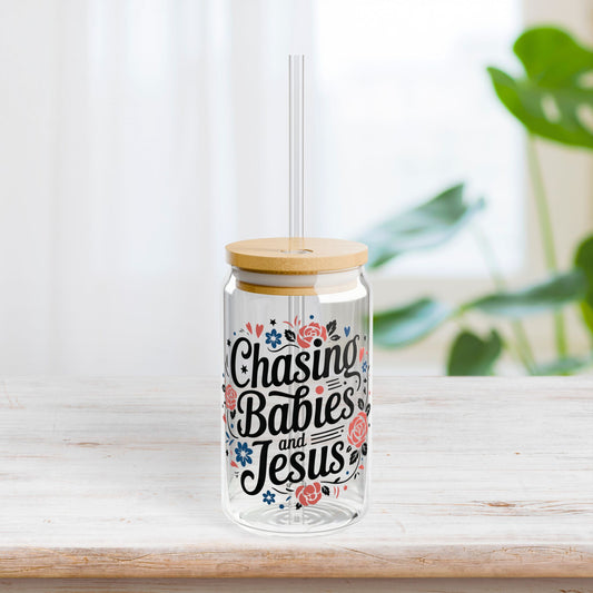 Chasing Babies & Jesus Sipper Glass with Bamboo Lid & Straw - 16 oz