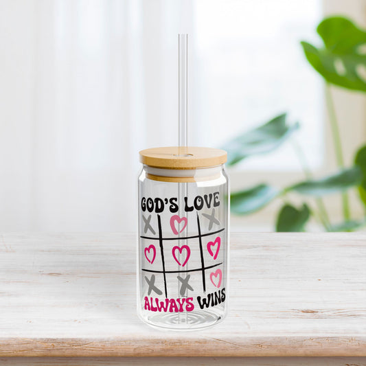 God's Love Always Wins Sipper Glass with Bamboo Lid & Straw - 16 oz