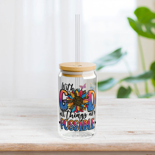 With God All Things Are Possible Sipper Glass with Bamboo Lid & Straw - 16 oz