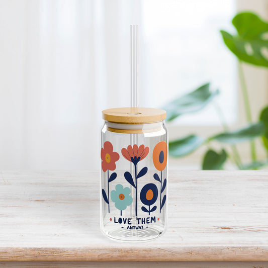 Love Them Anyway Sipper Glass with Bamboo Lid & Straw - 16 oz