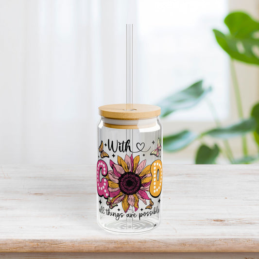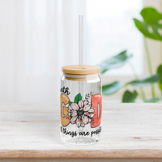 With God All Things Are Possible Sipper Glass with Bamboo Lid & Straw - 16 oz