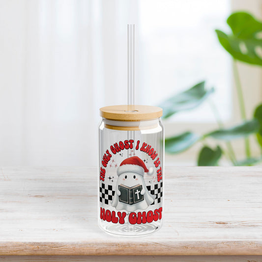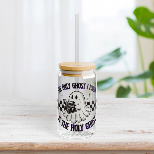 The Only Ghost I Know Is The Holy Ghost Sipper Glass with Bamboo Lid & Straw - 16 oz