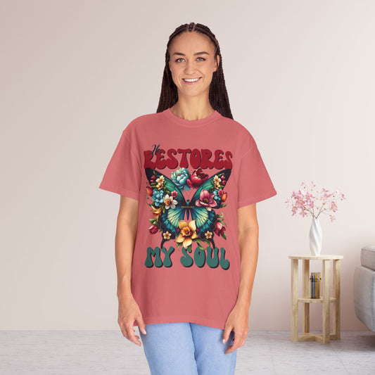 He Restores My Soul Comfort Colors Shirt - Psalm 23:3 Bible Verse Christian Shirt - Boho Christian Shirt
