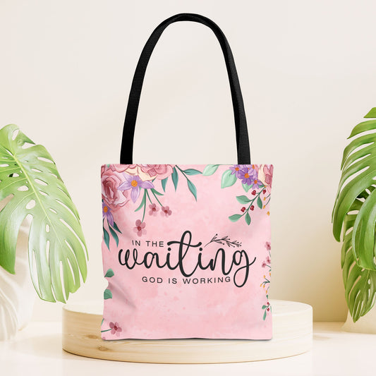 In The Waiting God is Working Tote Bag - Christian Tote Bag