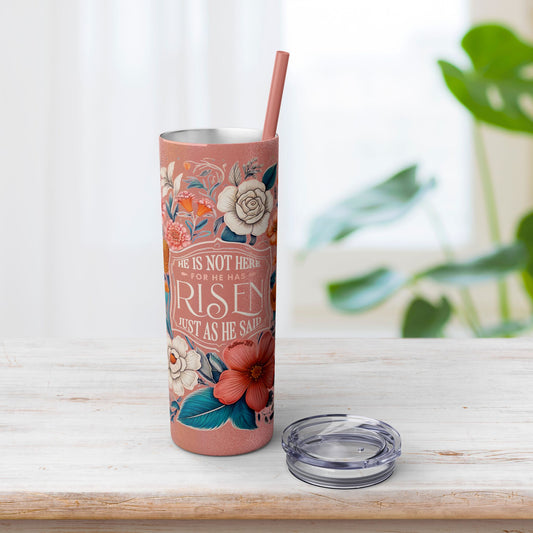 He Is Not Here He Has Risen Skinny Tumbler with Straw - 20oz
