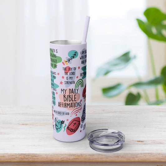 Christian Bible Affirmations Skinny Tumbler with Straw - 20oz