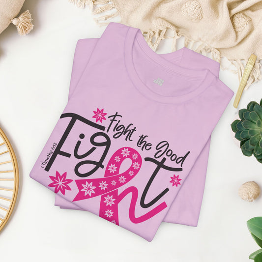 Fight The Good Fight Soft Cotton Tee - Christian Cancer Awareness Shirt