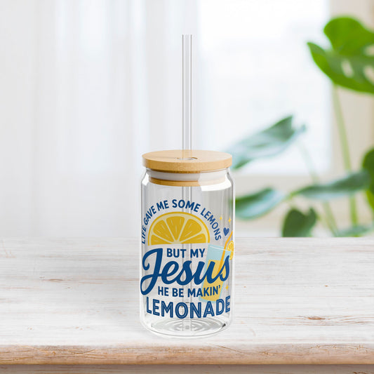 Life Gave Me Lemons But My Jesus Makes Lemonade Sipper Glass with Bamboo Lid & Straw - 16 ozRegular price $29.95 USDRegular priceUnit price / per-