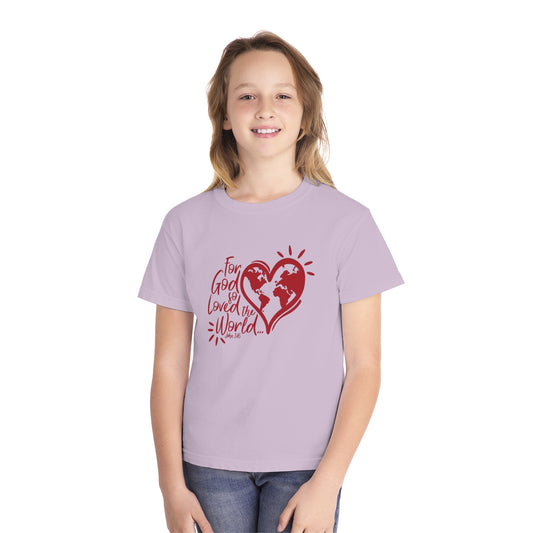 For God So Loved The World Comfort Colors Youth Christian Tee
