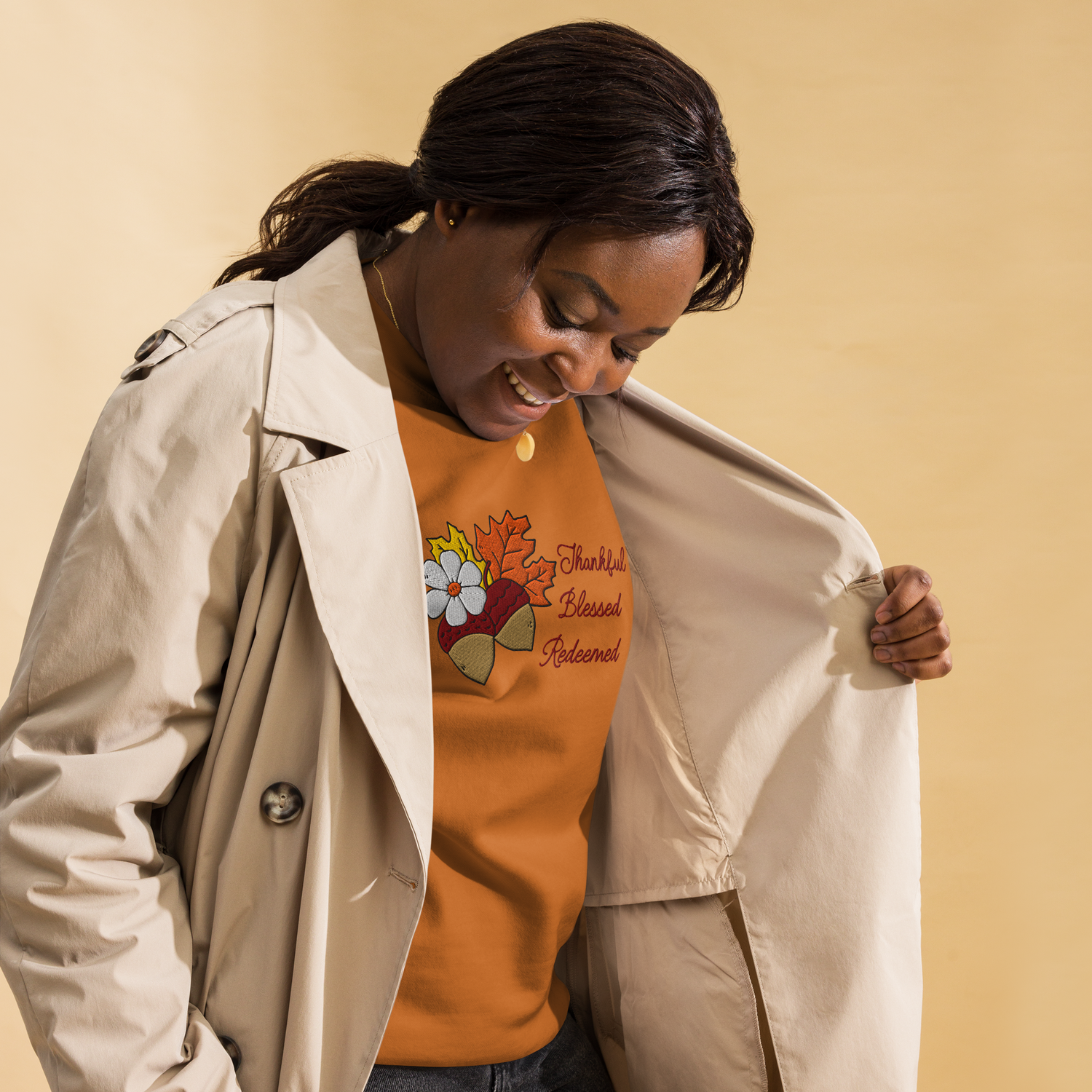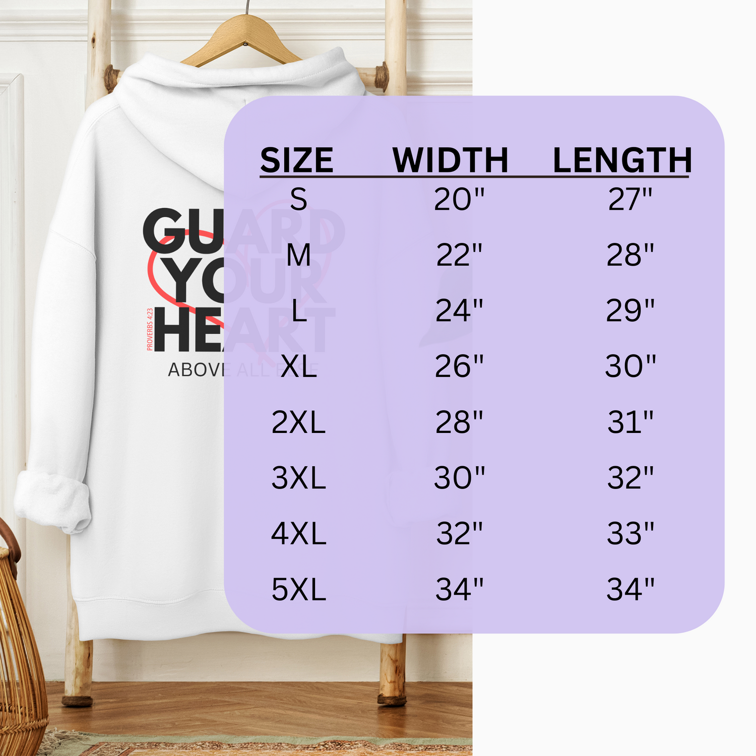 The majority of our mockups feature the LARGE apparel size, providing you with a clear view of the design's size as it appears when printed. Although we automatically scale down the design for smaller apparel sizes, as demonstrated in the image below, please note that it will not be scaled up for sizes larger than L.