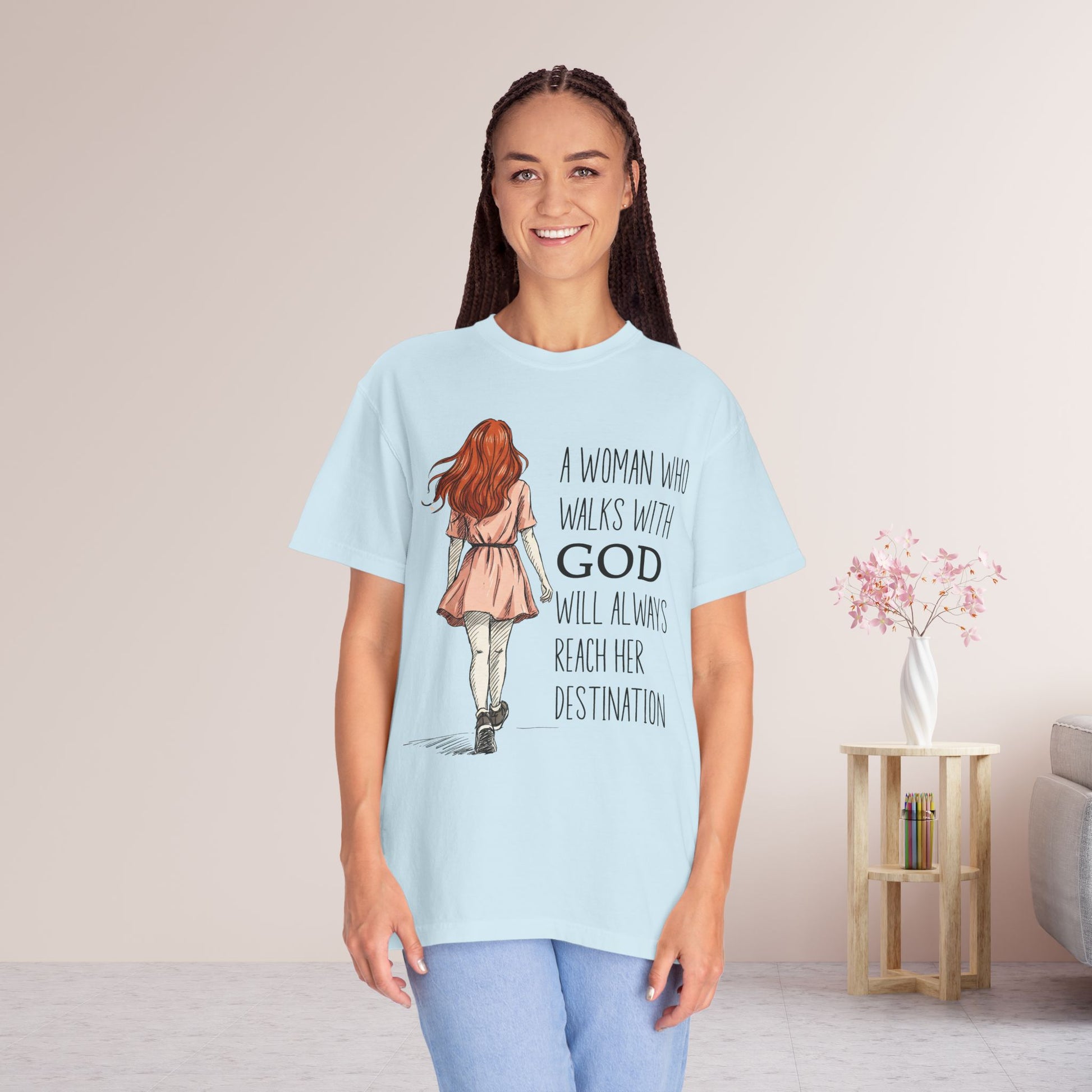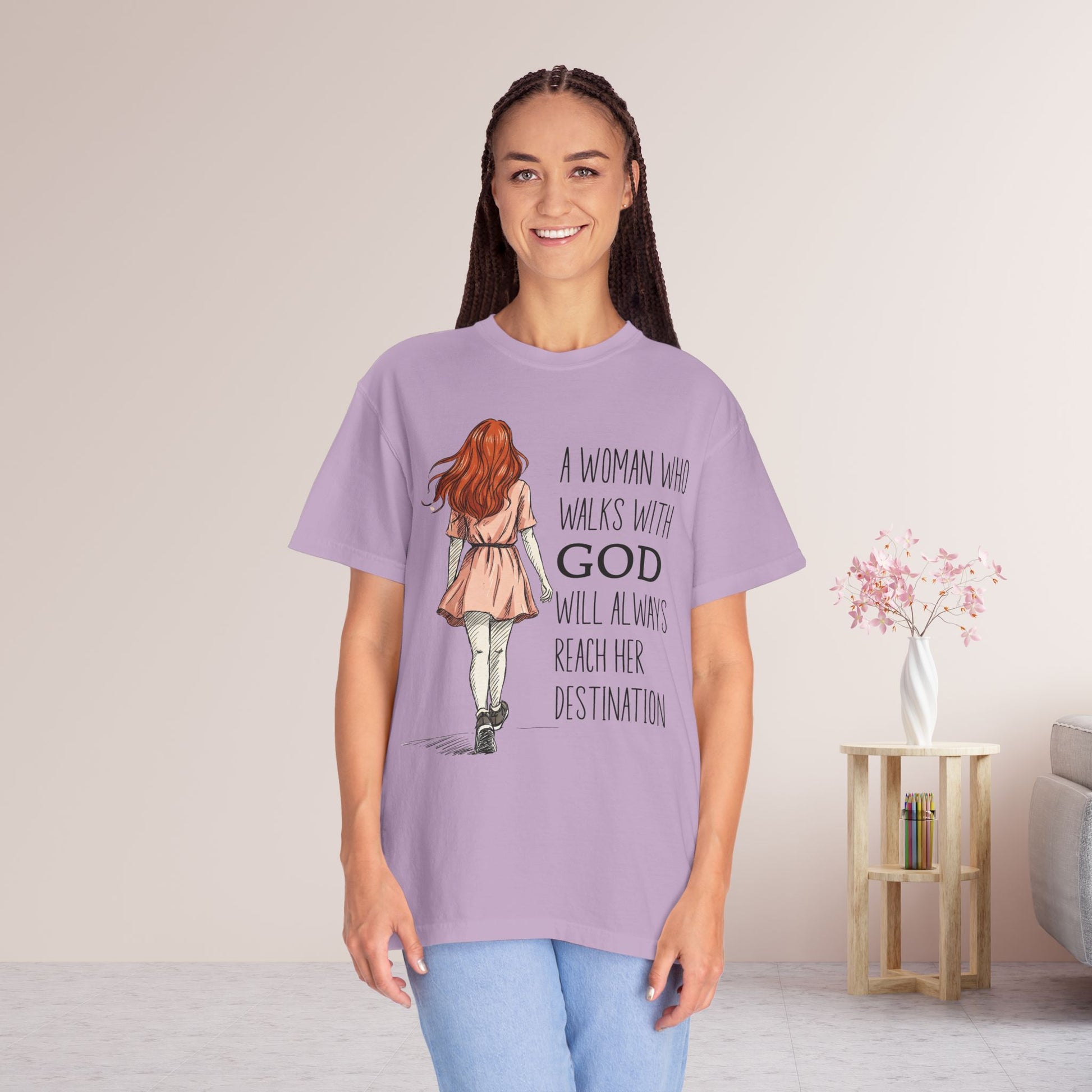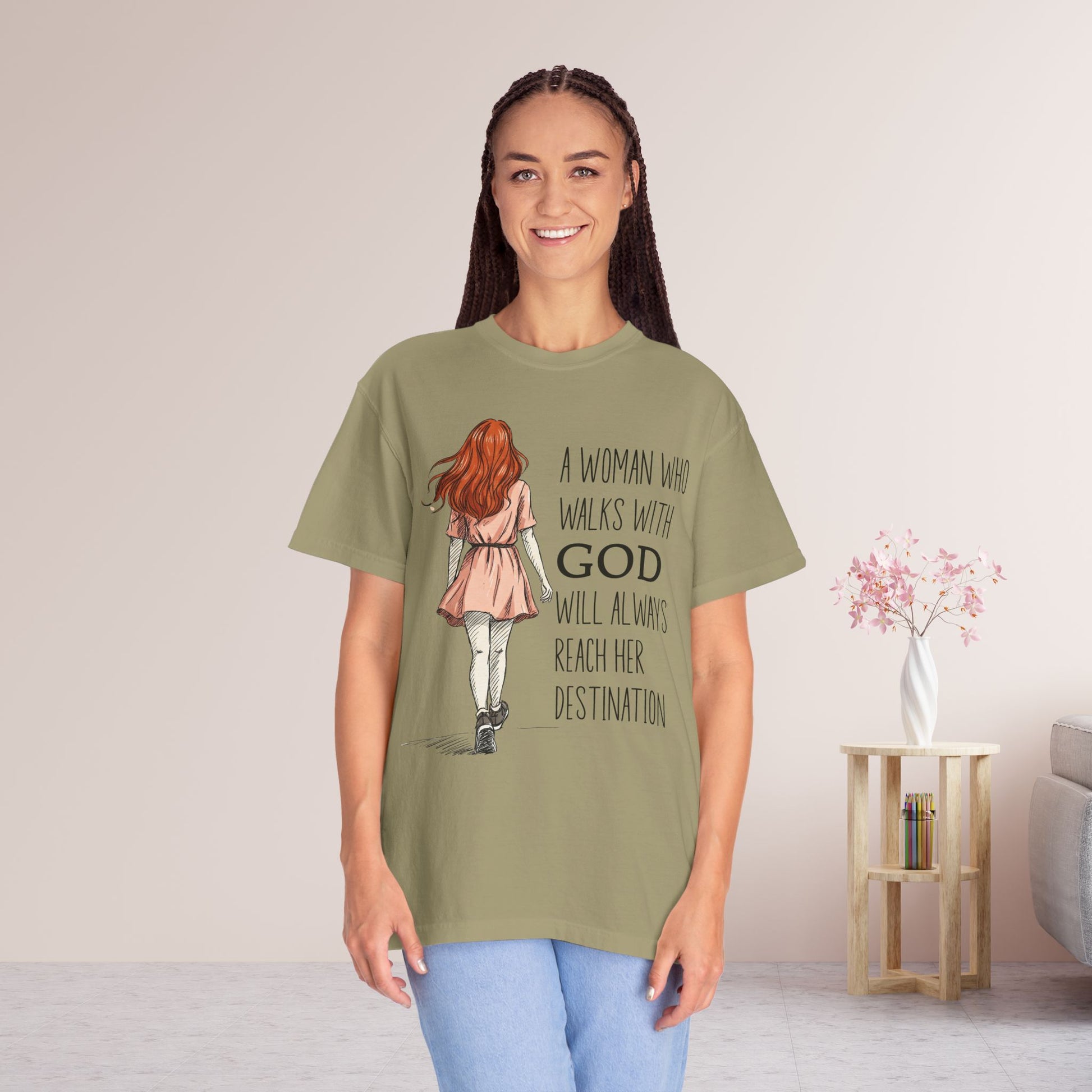 A Woman Who Walks with God Will Always Reach Her Destination Comfort Colors Shirt