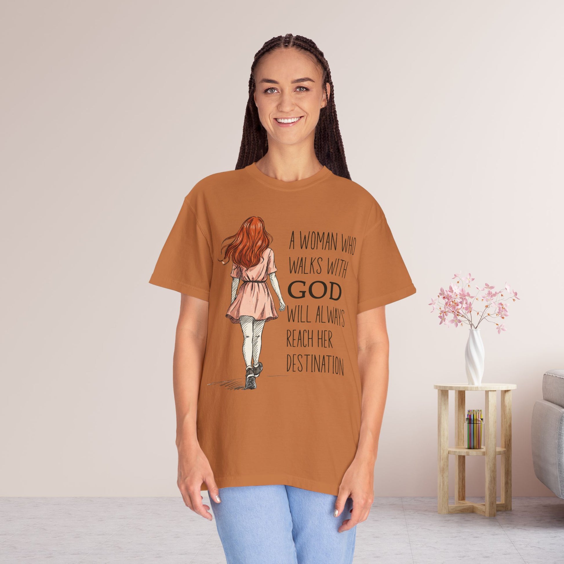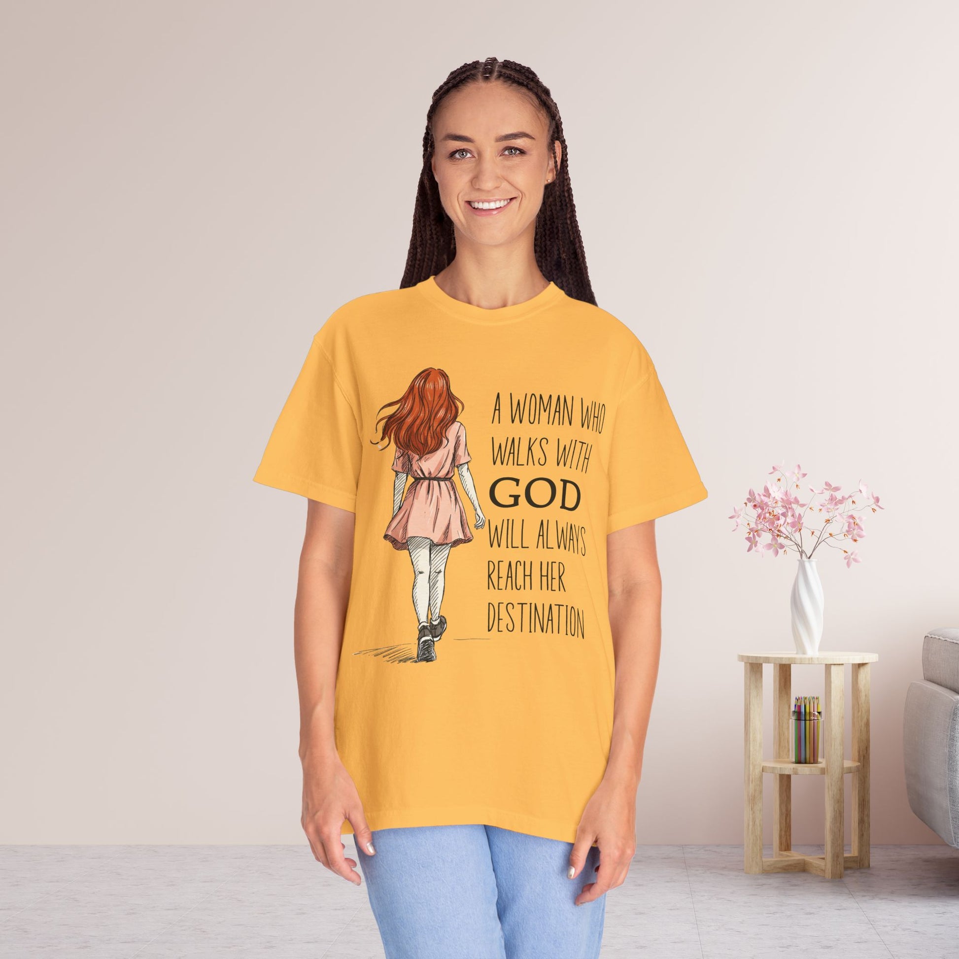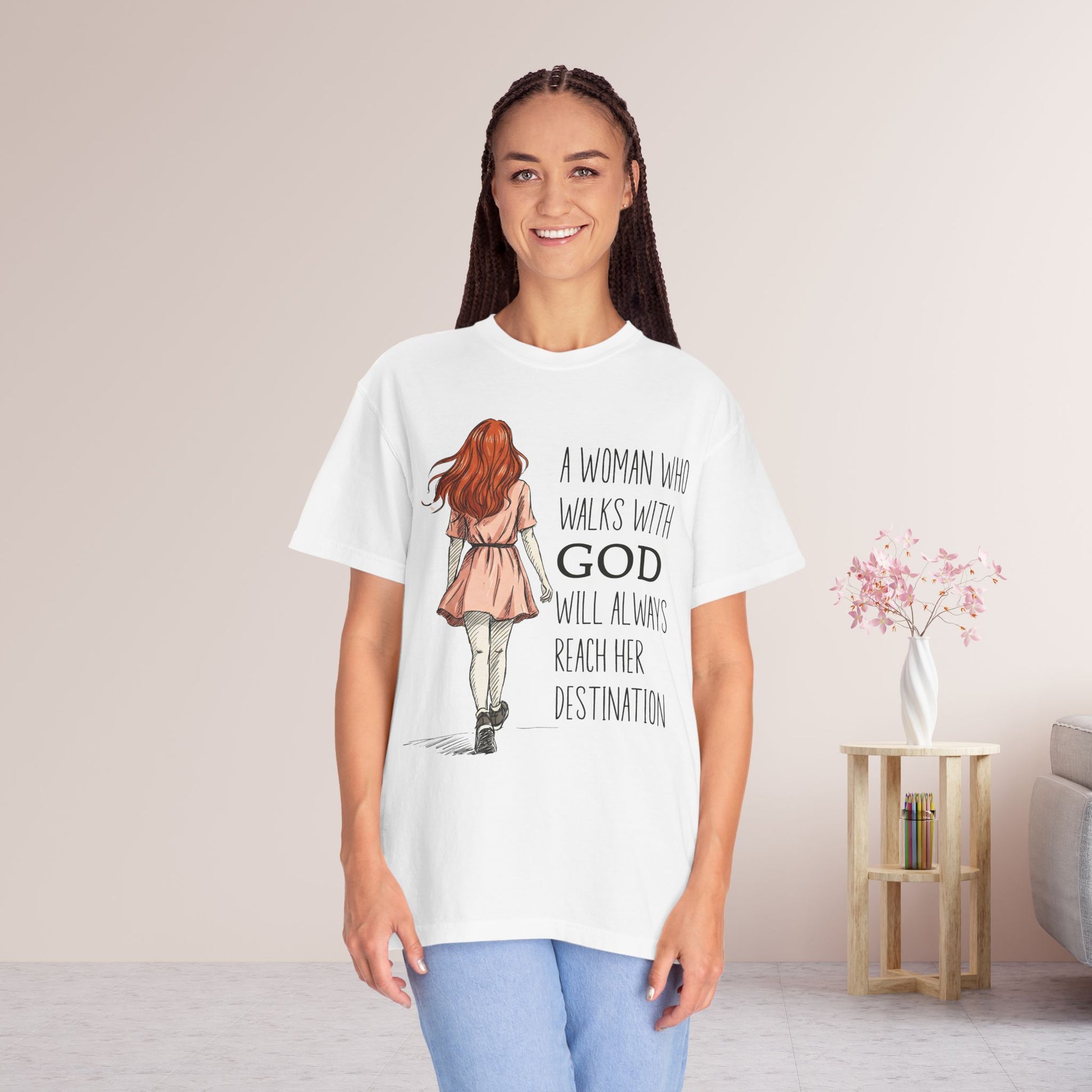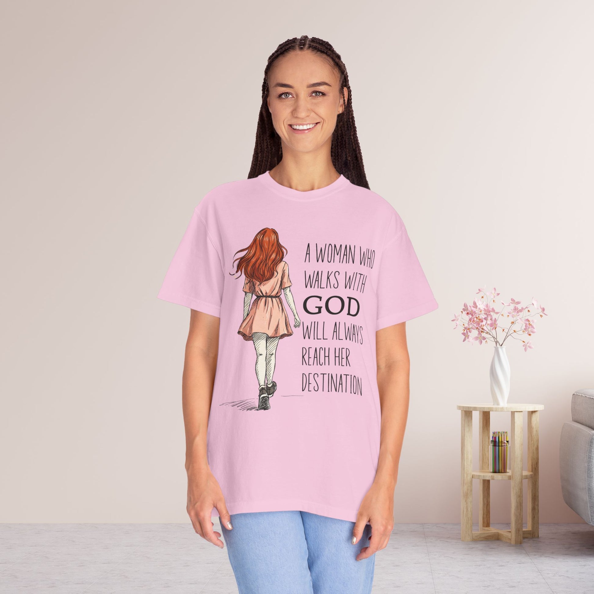 A Woman Who Walks with God Will Always Reach Her Destination Comfort Colors Shirt