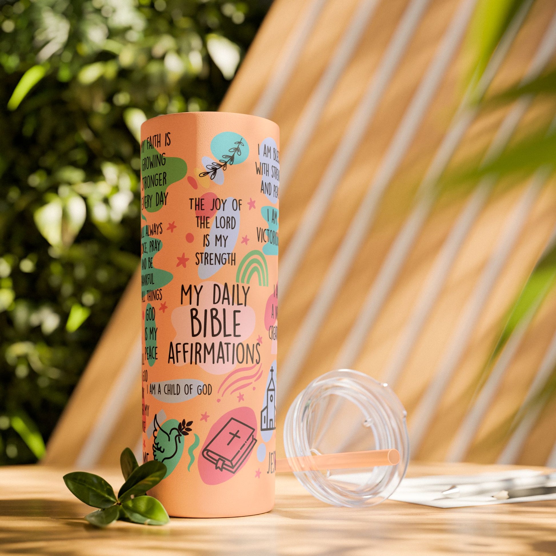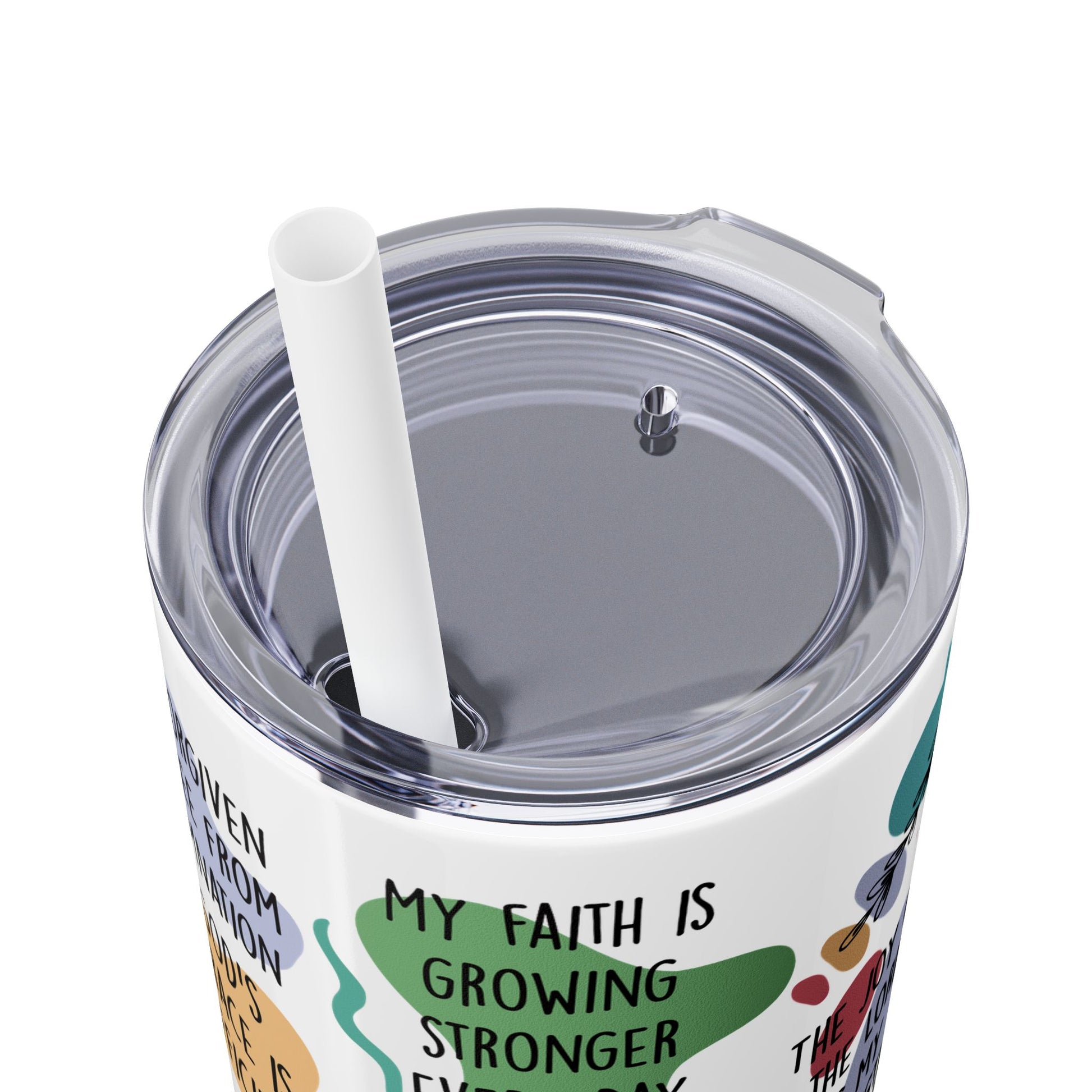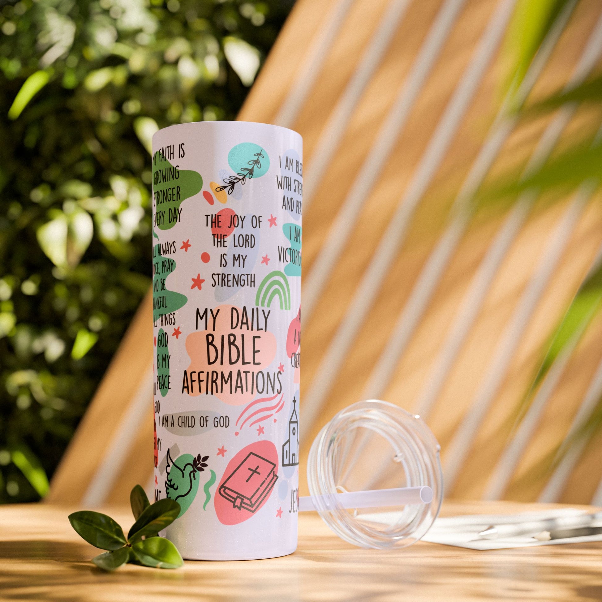 Christian Bible Affirmations Skinny Tumbler with Straw - 20oz