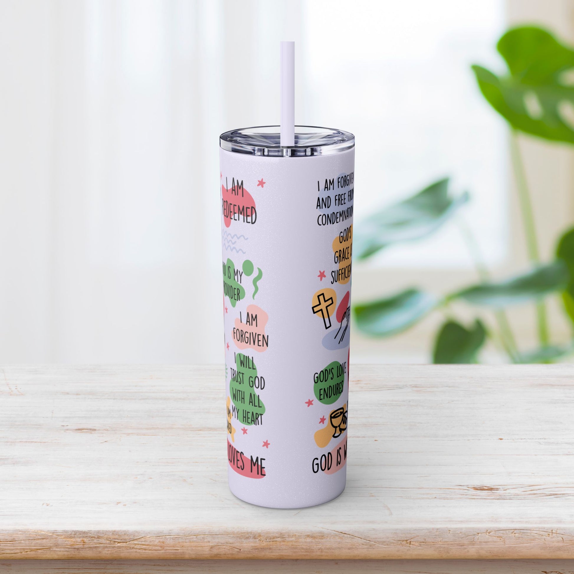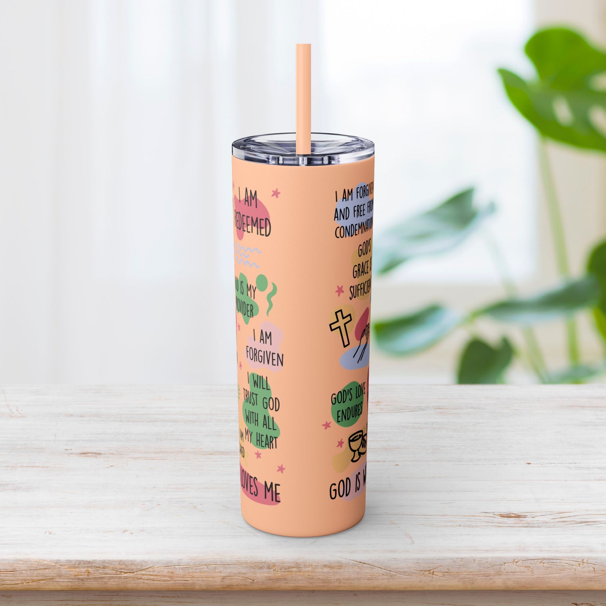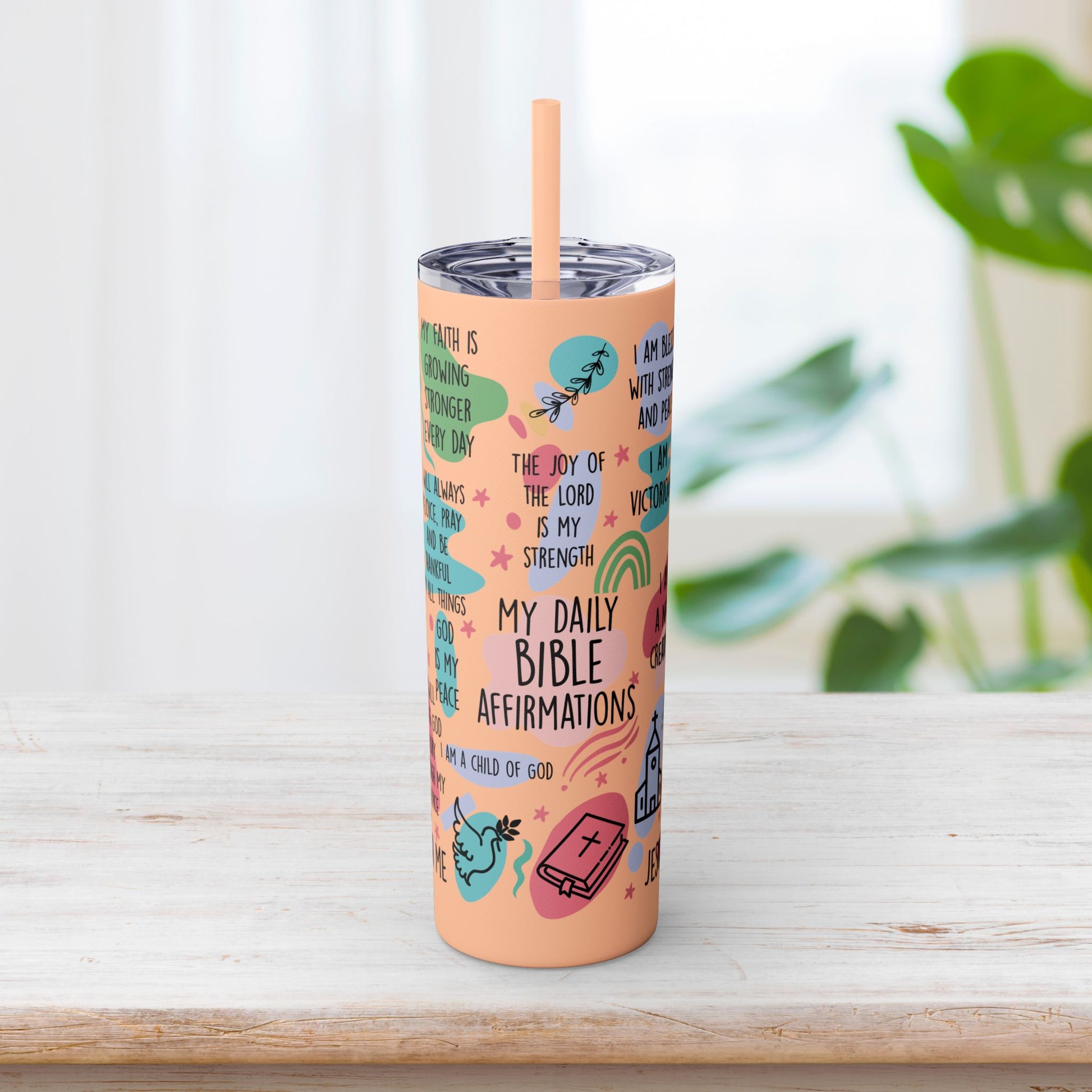 Christian Bible Affirmations Skinny Tumbler with Straw - 20oz