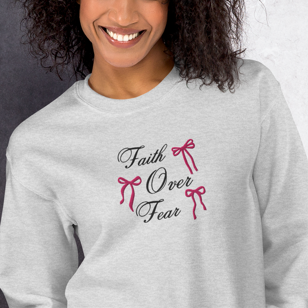 Perfect for casual wear, Bible study, church gatherings, or as a meaningful Christian gift, the Faith Over Fear Embroidered Sweatshirt encourages you—and those around you—to choose faith every time fear tries to creep in.