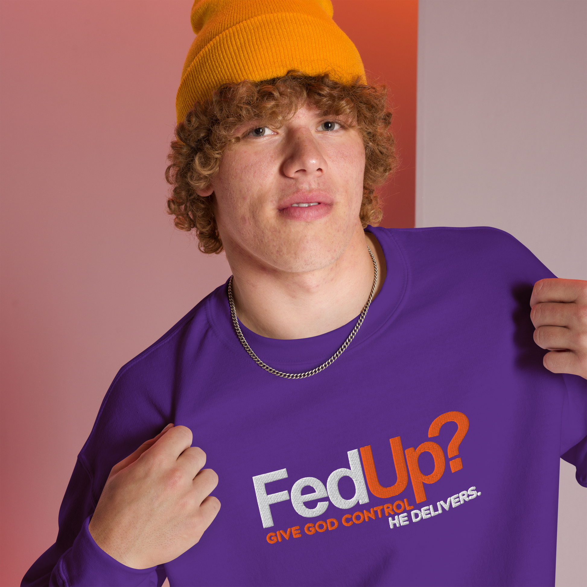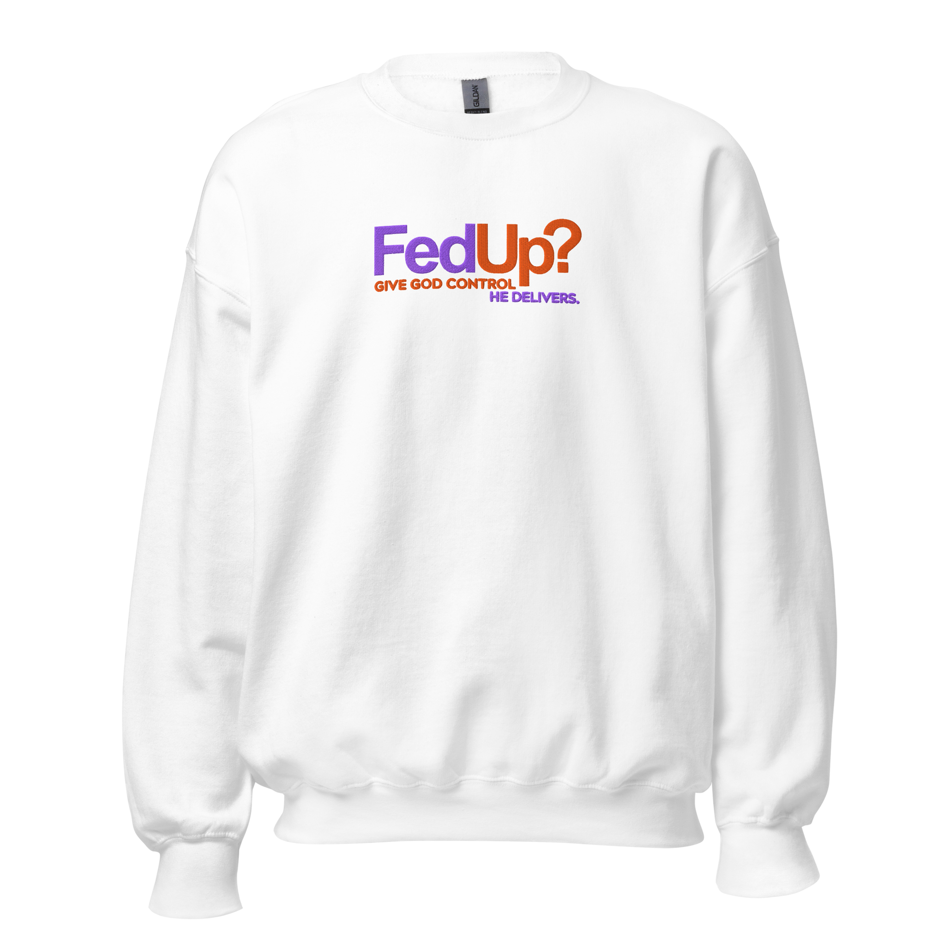 When life feels heavy and nothing seems to go right, this sweatshirt is your gentle reminder — God is still in control. The bold embroidered message “Fed Up? Give God Control. He Delivers” brings hope to weary hearts and truth to everyday struggles.