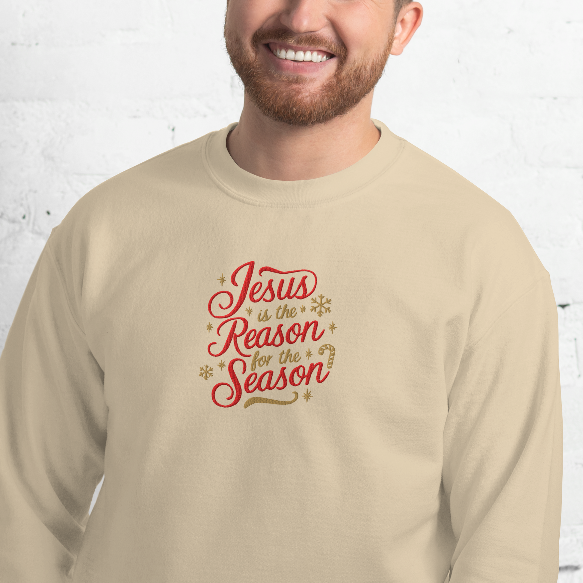 - Design: Embroidered “Jesus Is the Reason for the Season” message