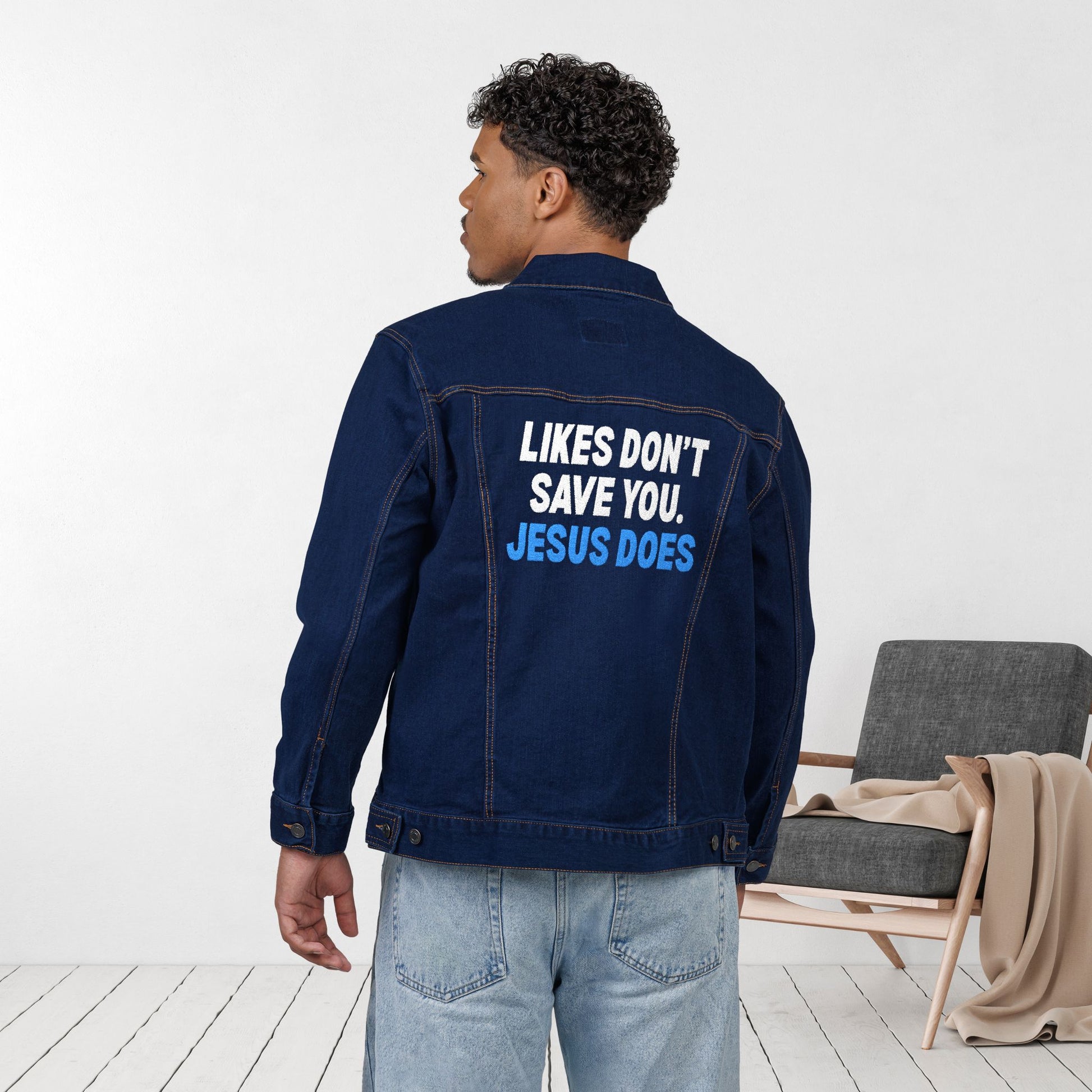 Embroidered Likes Don't Save You Jesus Does Unisex Denim Jacket