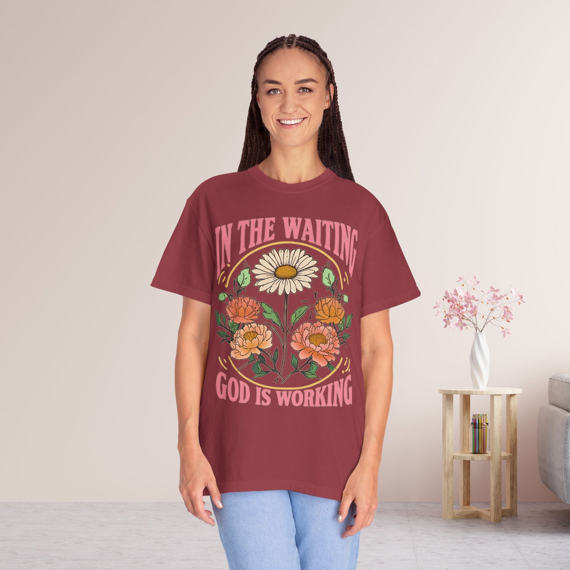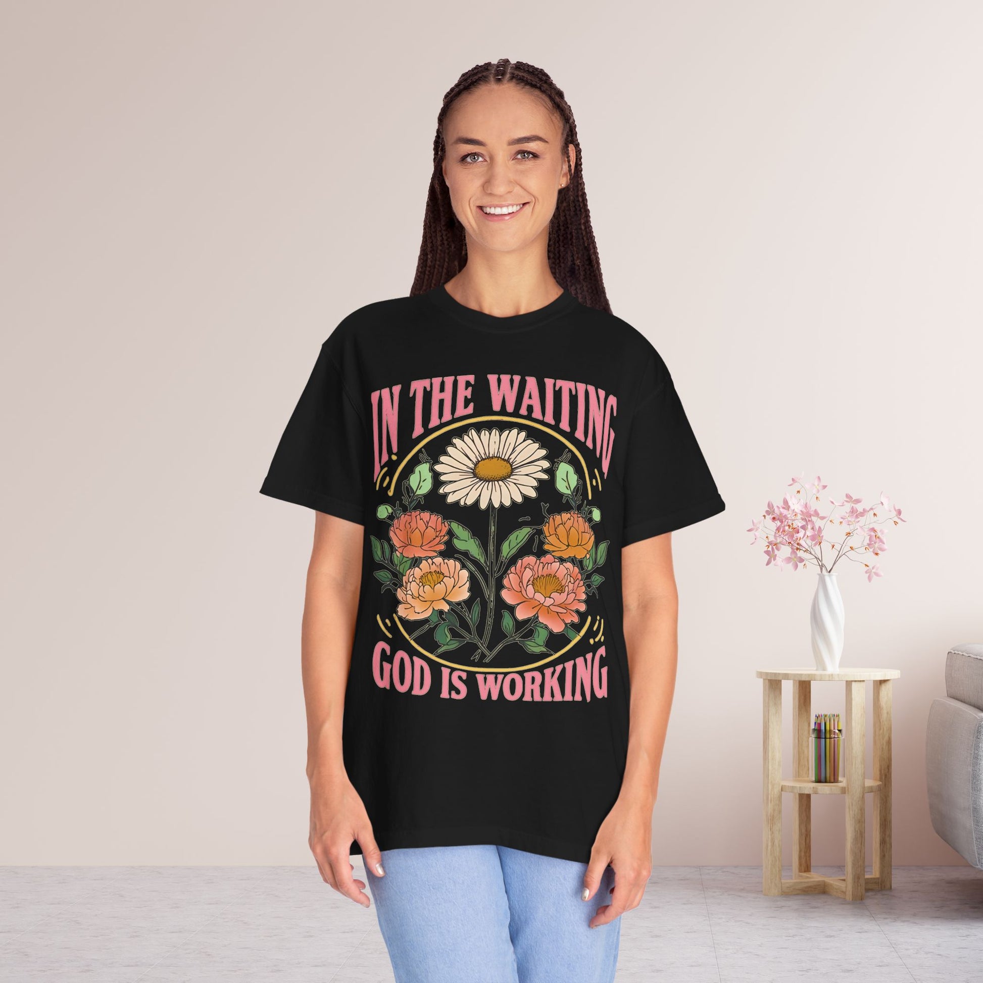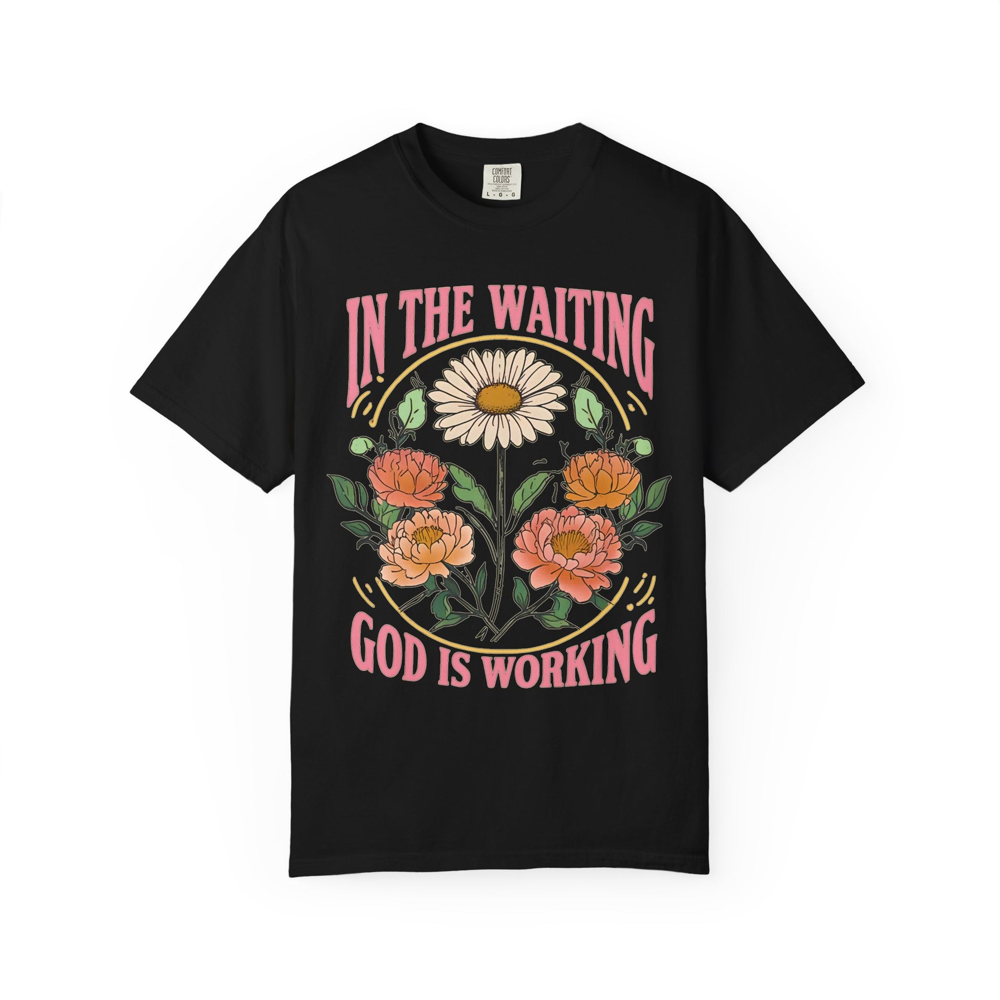 This tee is for the hearts in a holding pattern—those who are waiting on answers, breakthrough, healing, or direction. "In The Waiting, God is Working" reminds us that God is never idle. Behind the scenes, in ways we can’t see, He’s aligning the details, preparing the path, and writing the story.