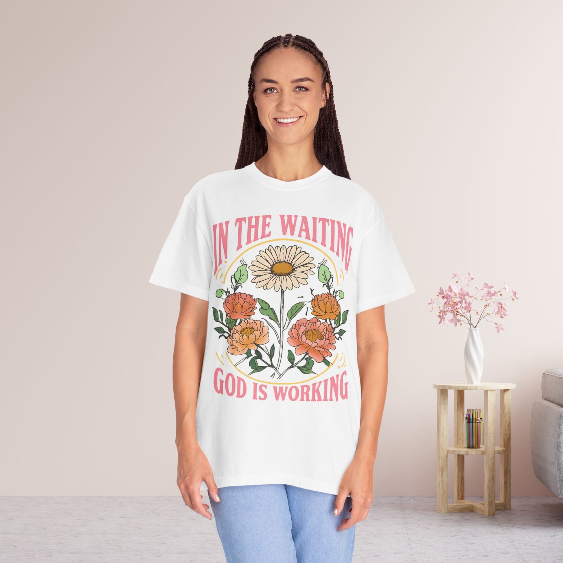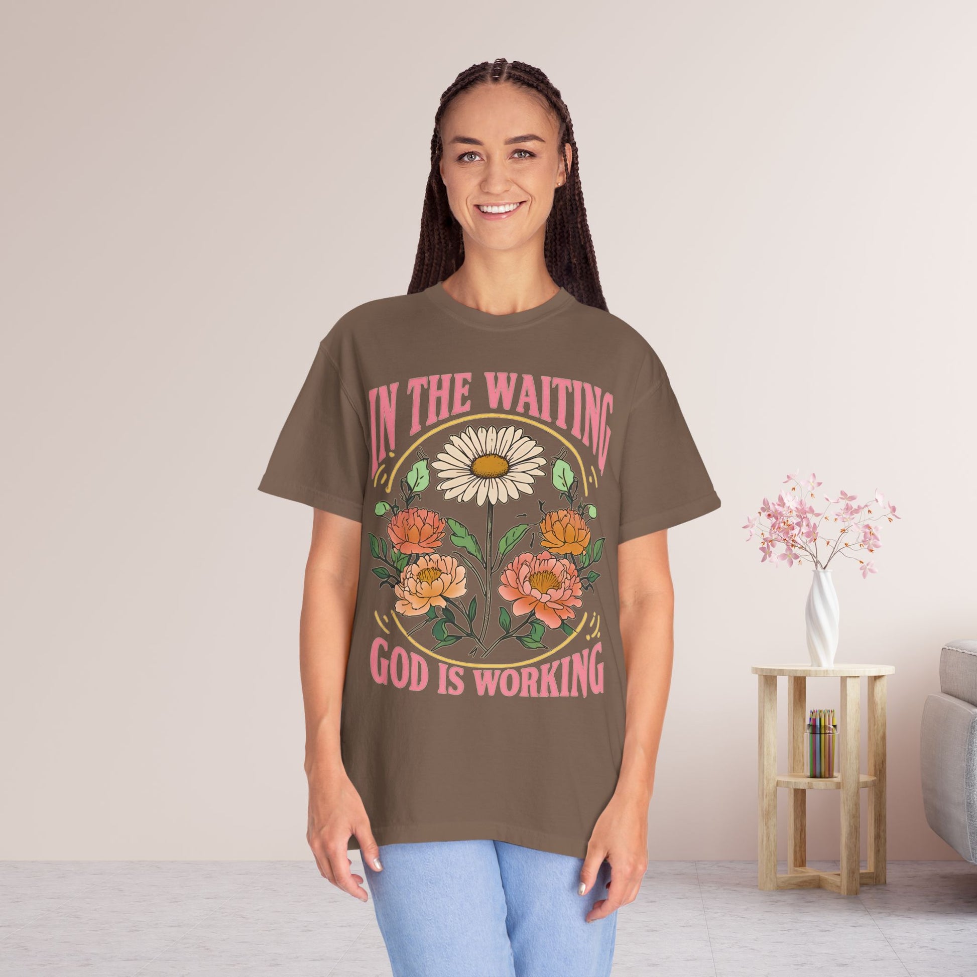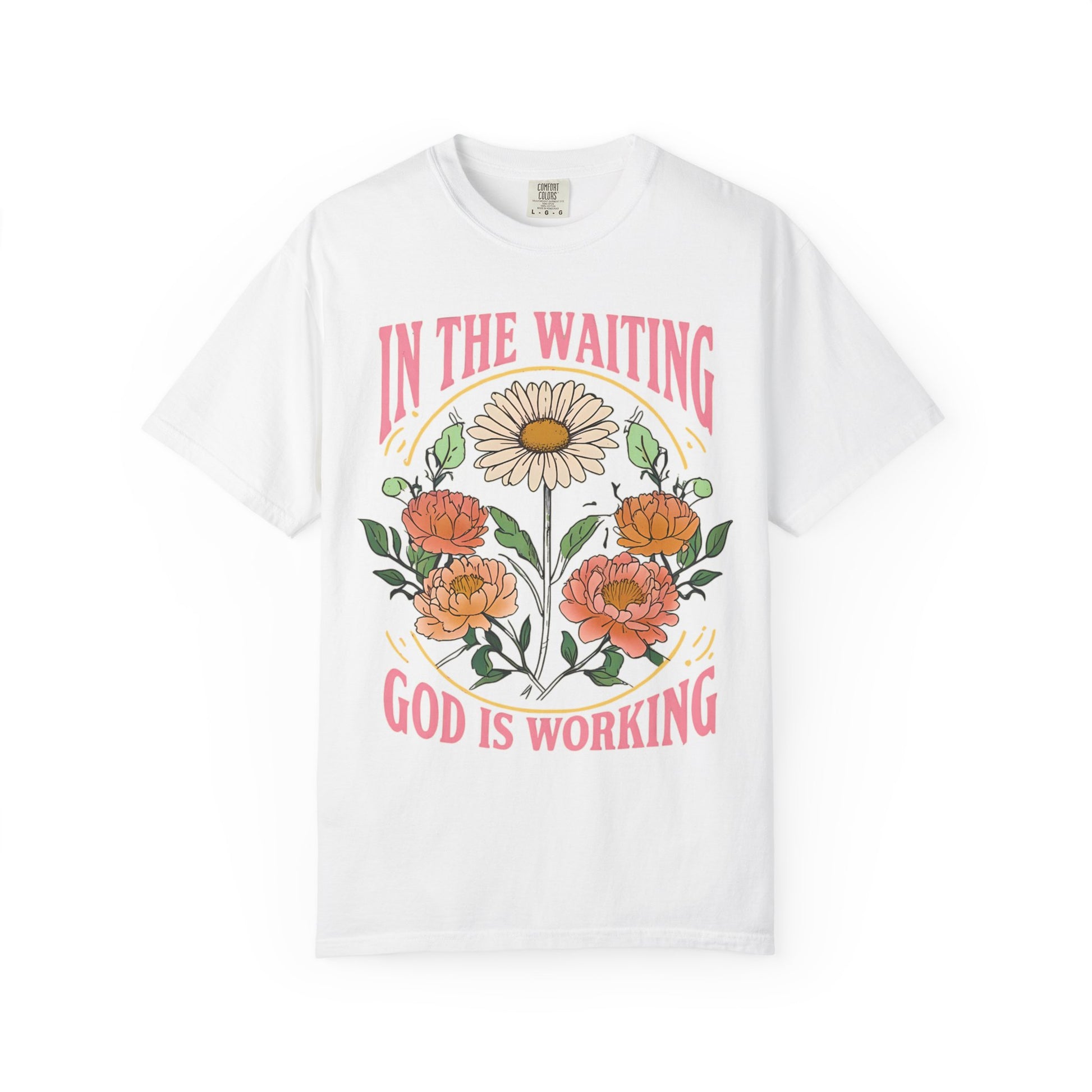 This tee is for the hearts in a holding pattern—those who are waiting on answers, breakthrough, healing, or direction. "In The Waiting, God is Working" reminds us that God is never idle. Behind the scenes, in ways we can’t see, He’s aligning the details, preparing the path, and writing the story.