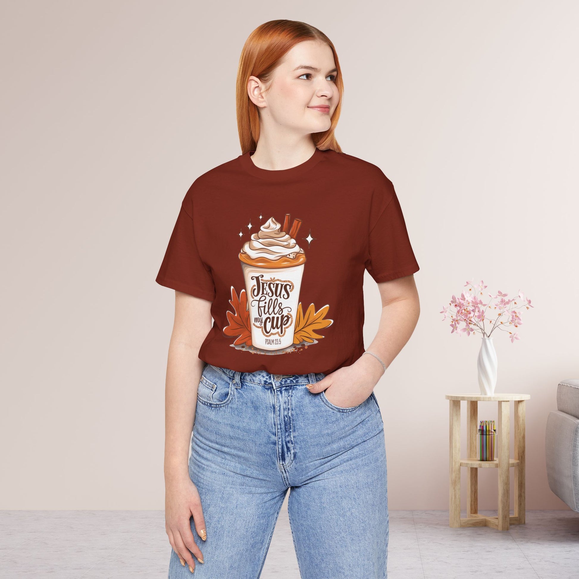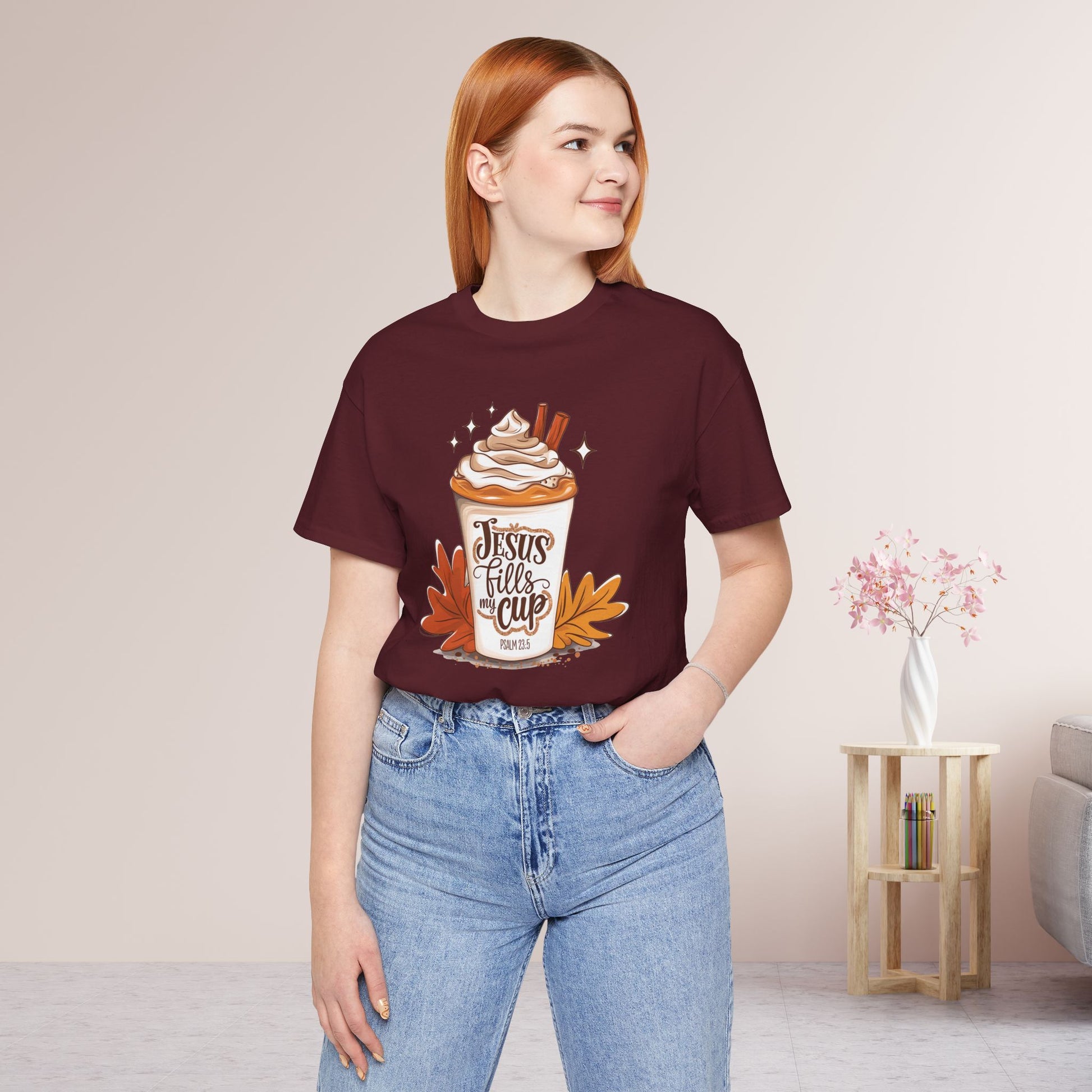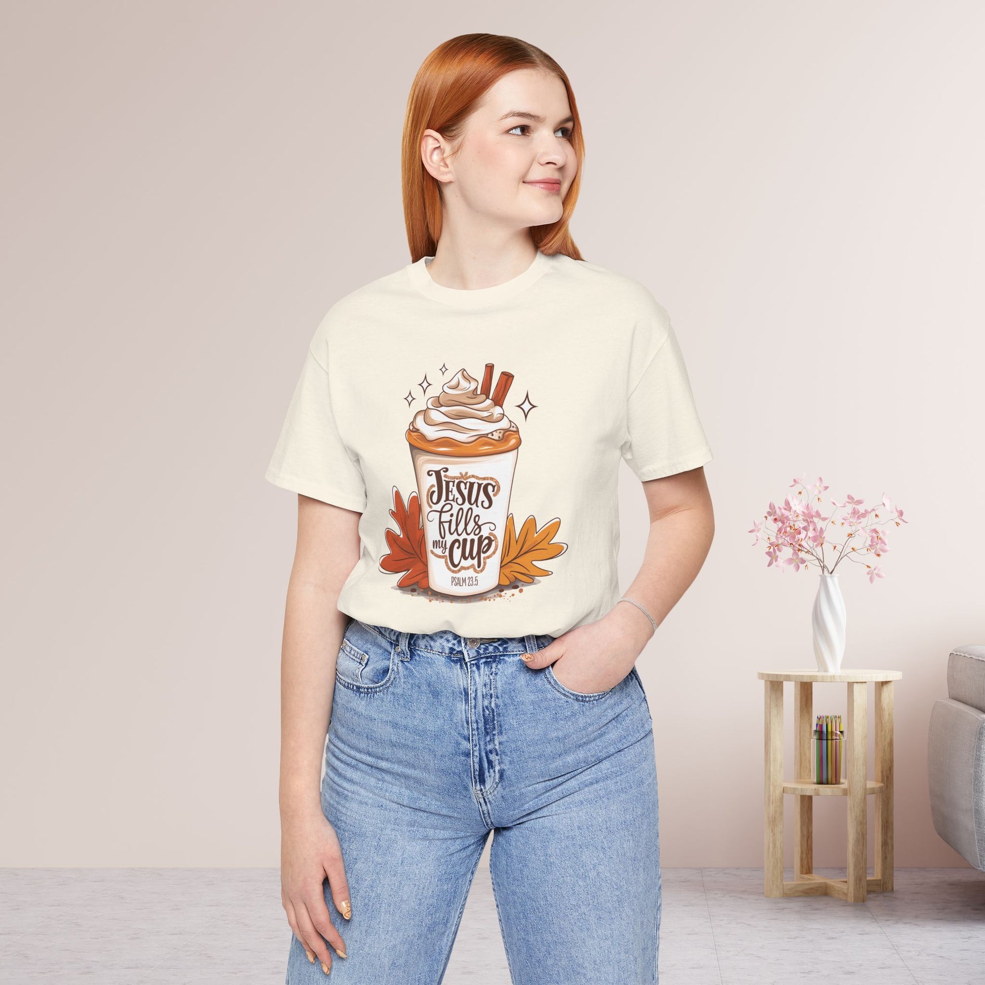 Jesus Fills My Cup Soft Cotton Tee - Fall Christian Tee