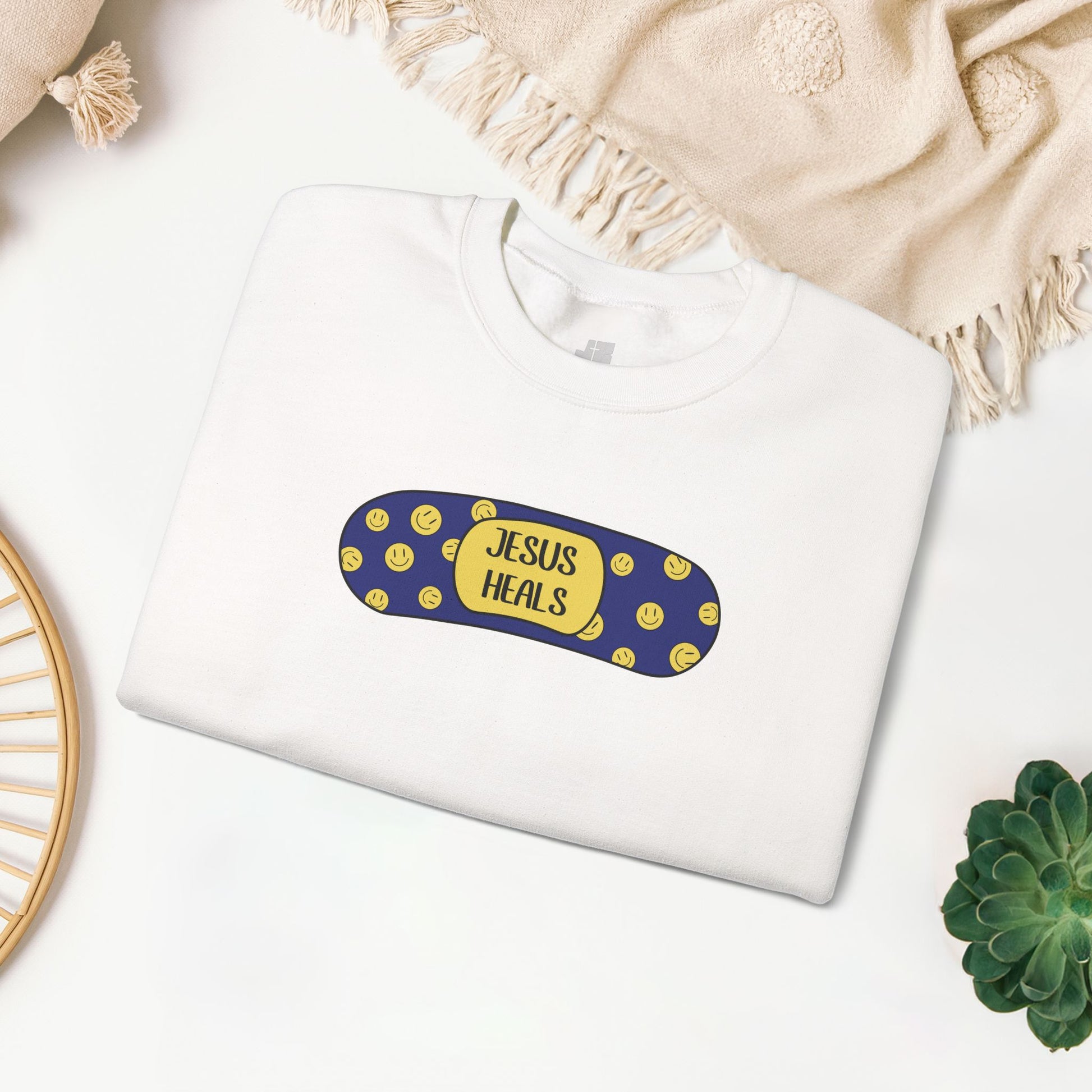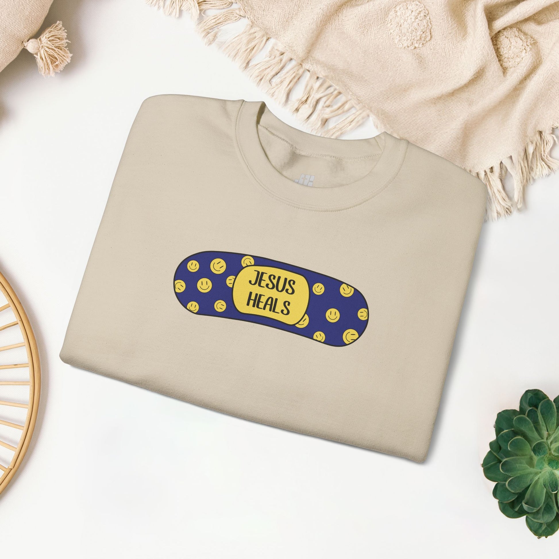 Experience faith and style with our Jesus Heals Sweatshirt, featuring a simple yet powerful bandage design on the front. This cozy sweatshirt is a reminder of the ultimate healing that comes from Jesus—perfect for anyone who wants to share hope in a subtle, meaningful way.