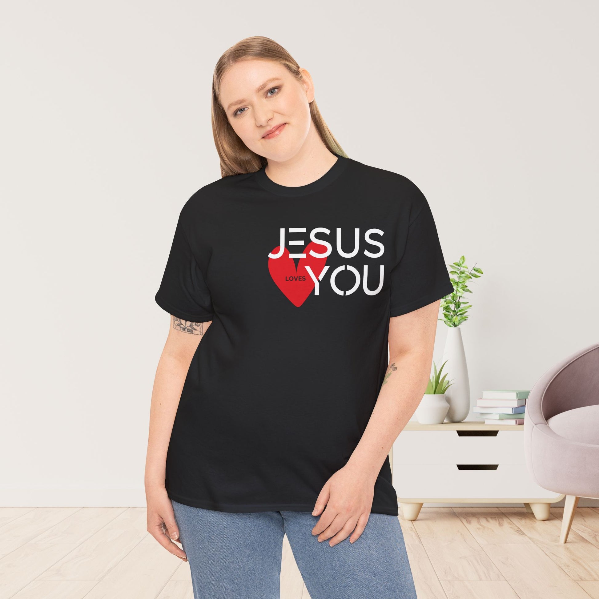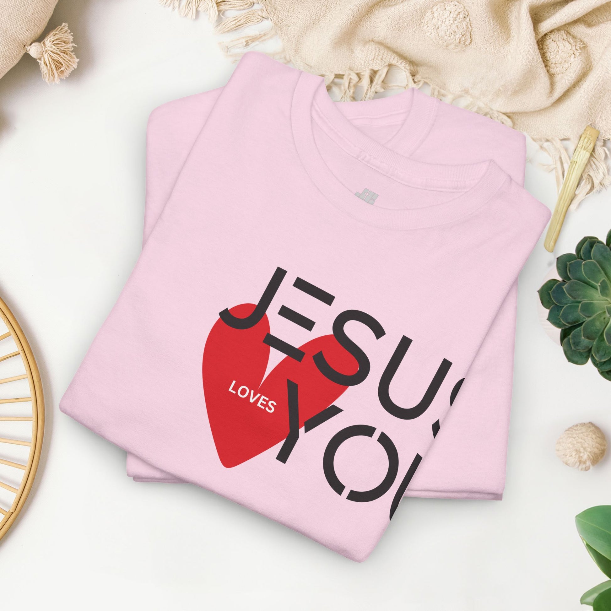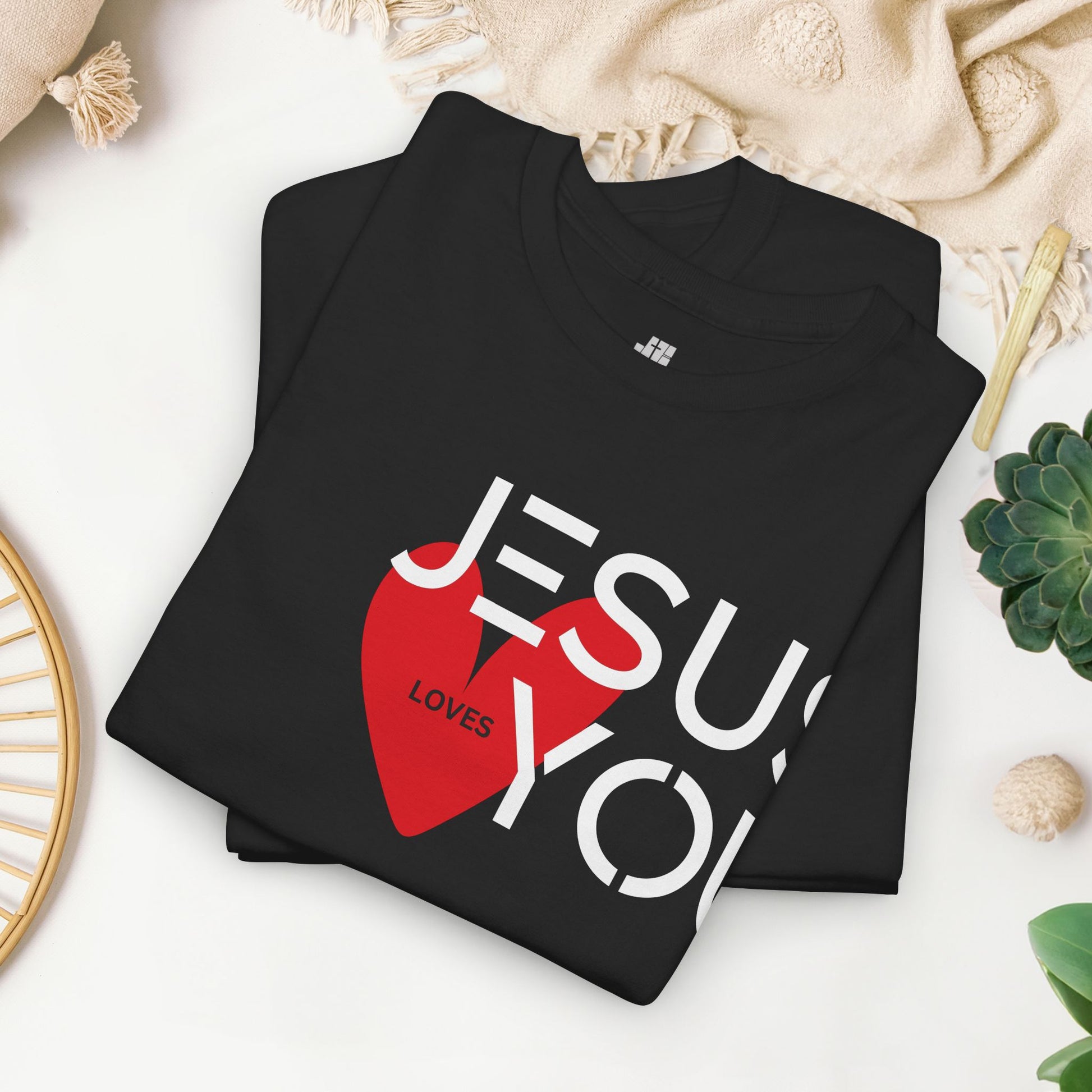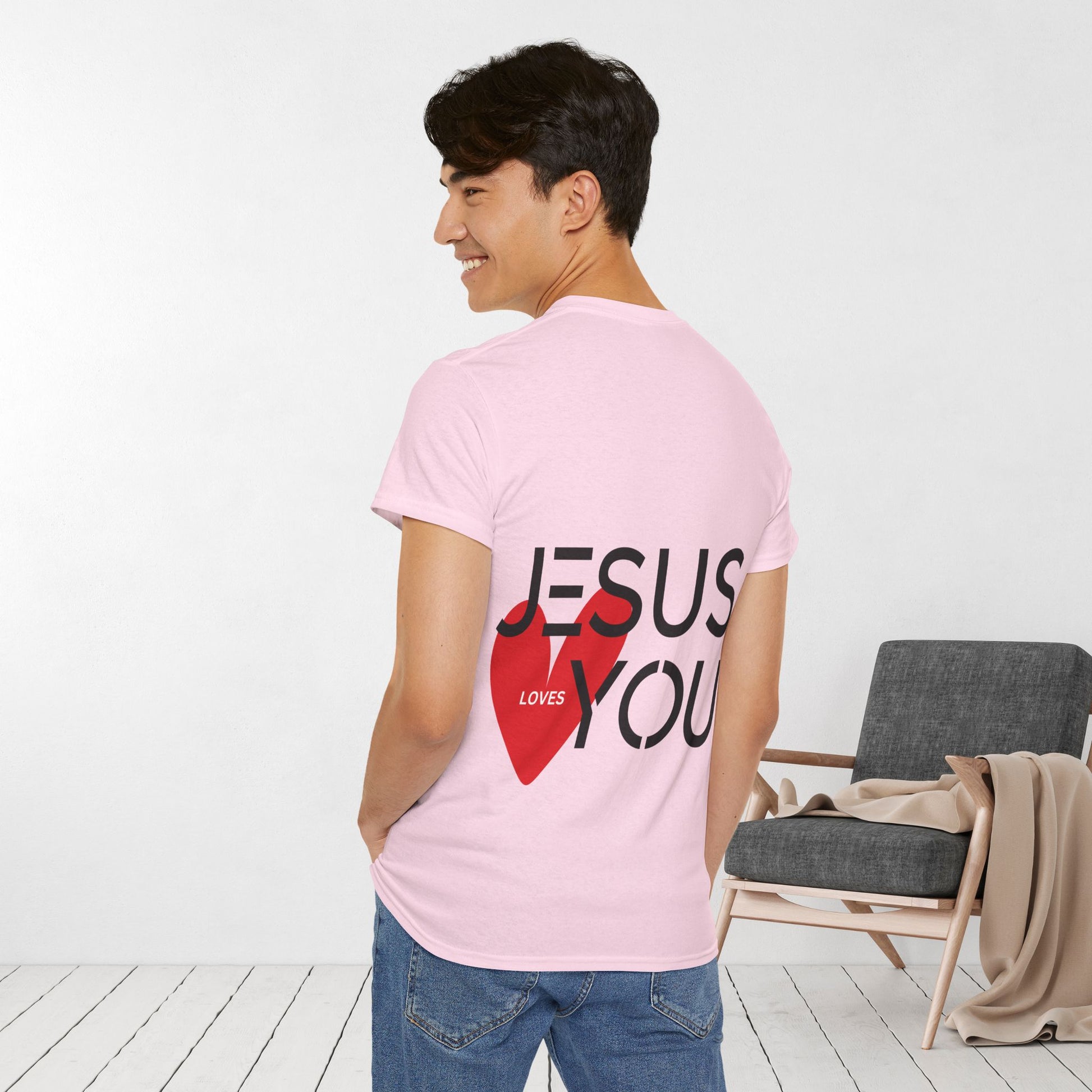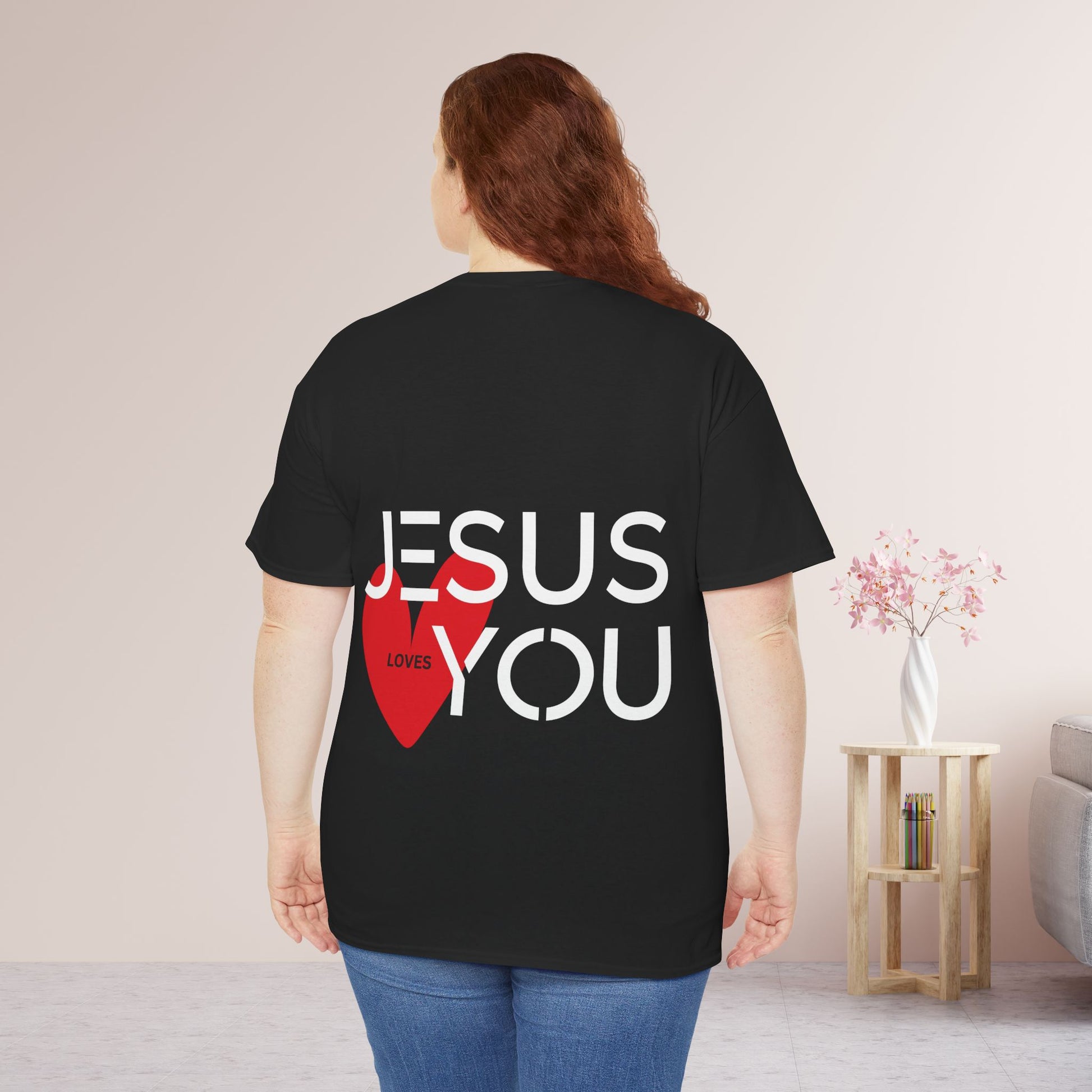 It’s simple. It’s powerful. It’s the message that the world needs to hear—Jesus Loves You. Whether someone reads it from across the room or walking past you, this shirt delivers a reminder that could spark hope, healing, or even salvation.