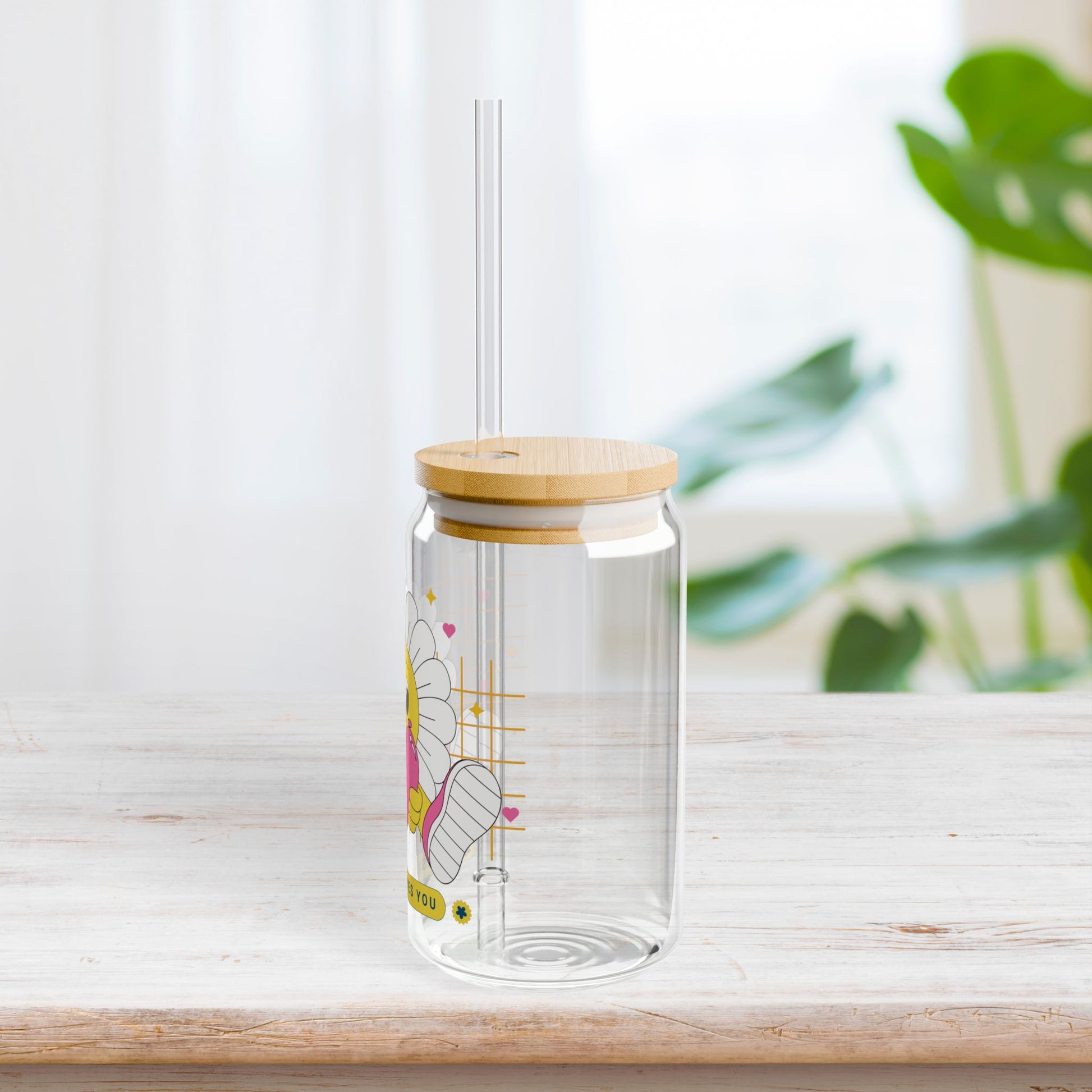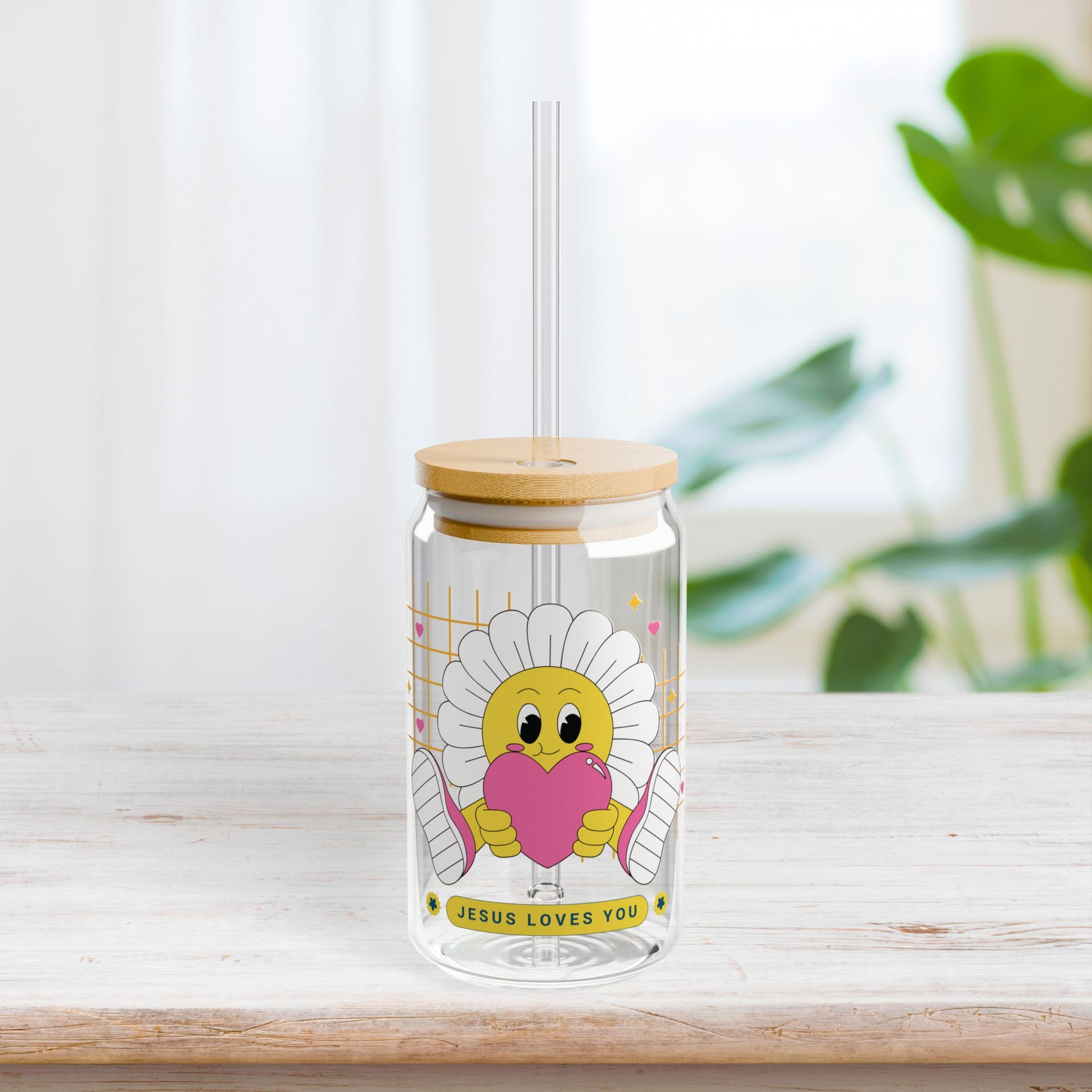 Jesus Loves You Sipper Glass with Bamboo Lid & Straw