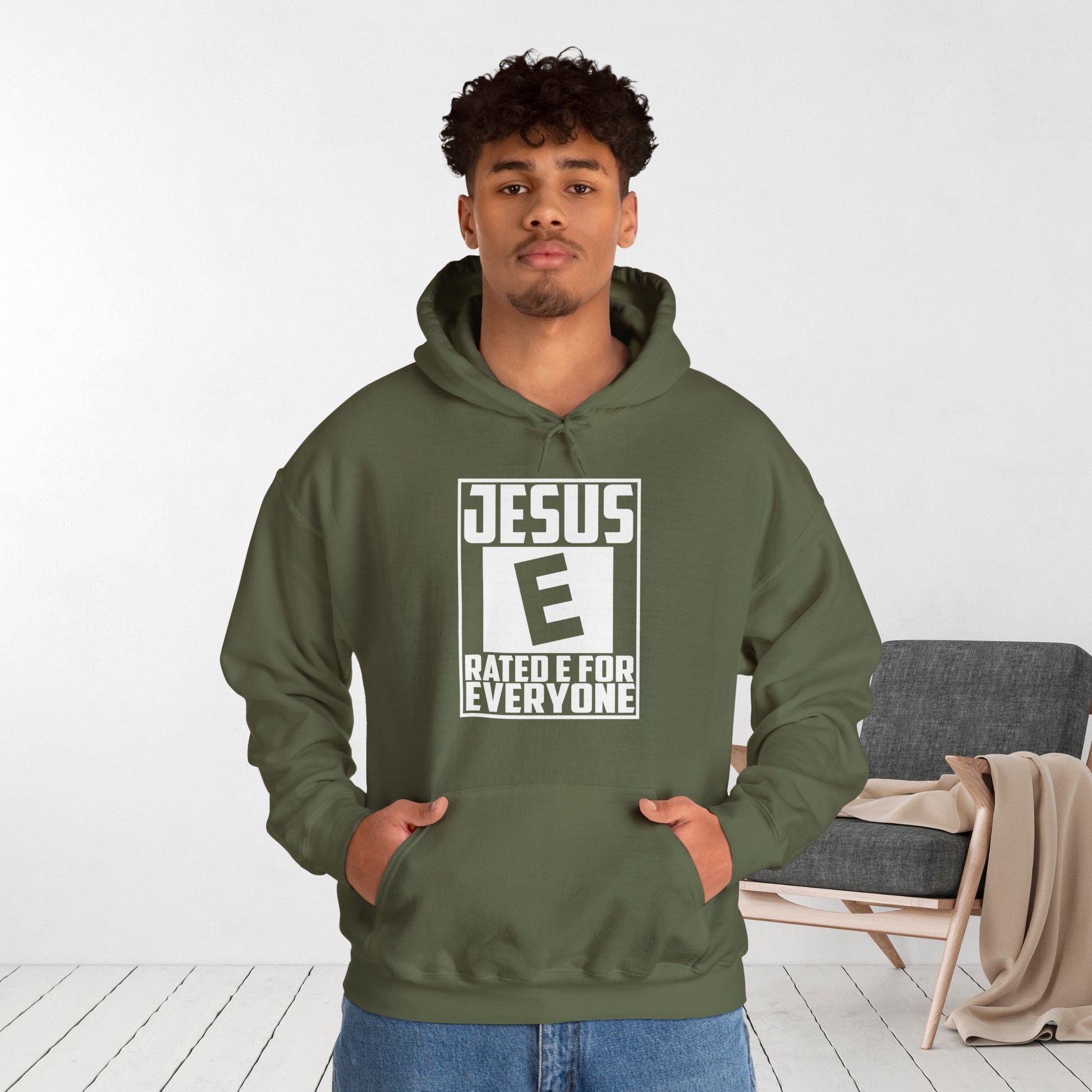 ✔ Bold Front Print – “Jesus Rated E for Everyone” for a message that speaks to everyone
