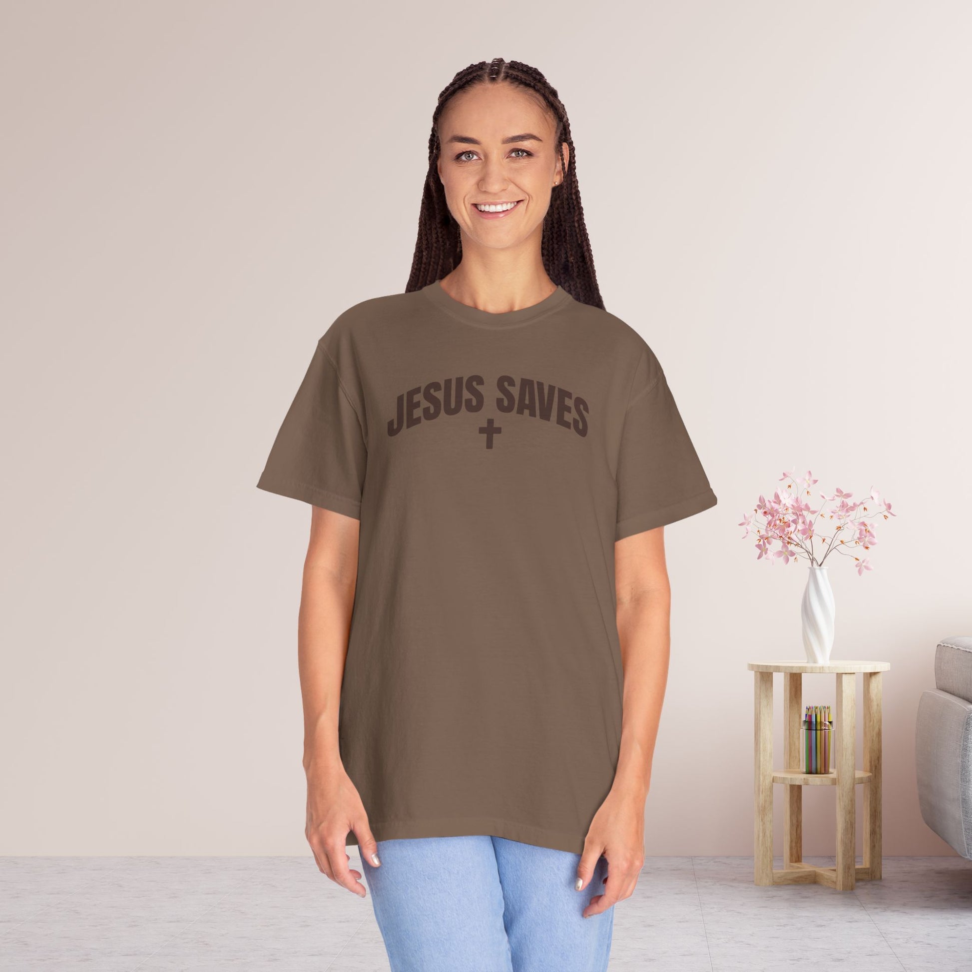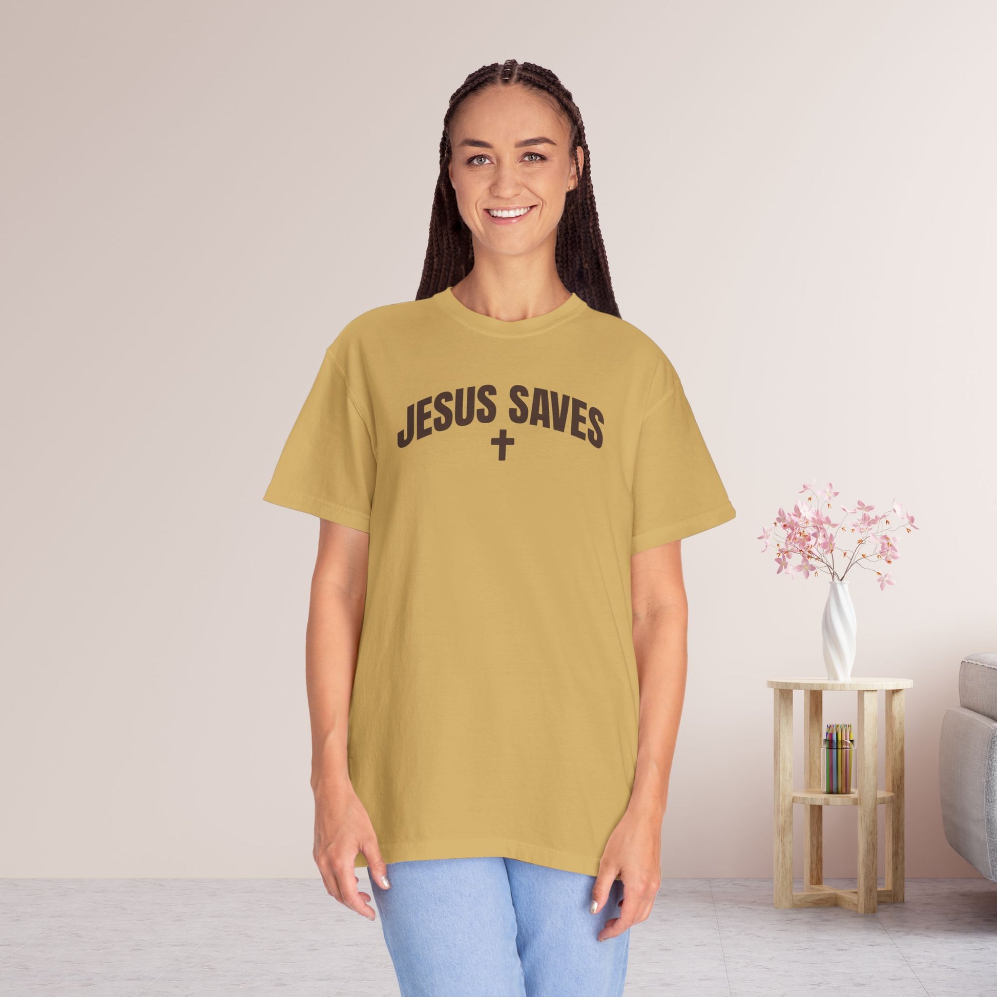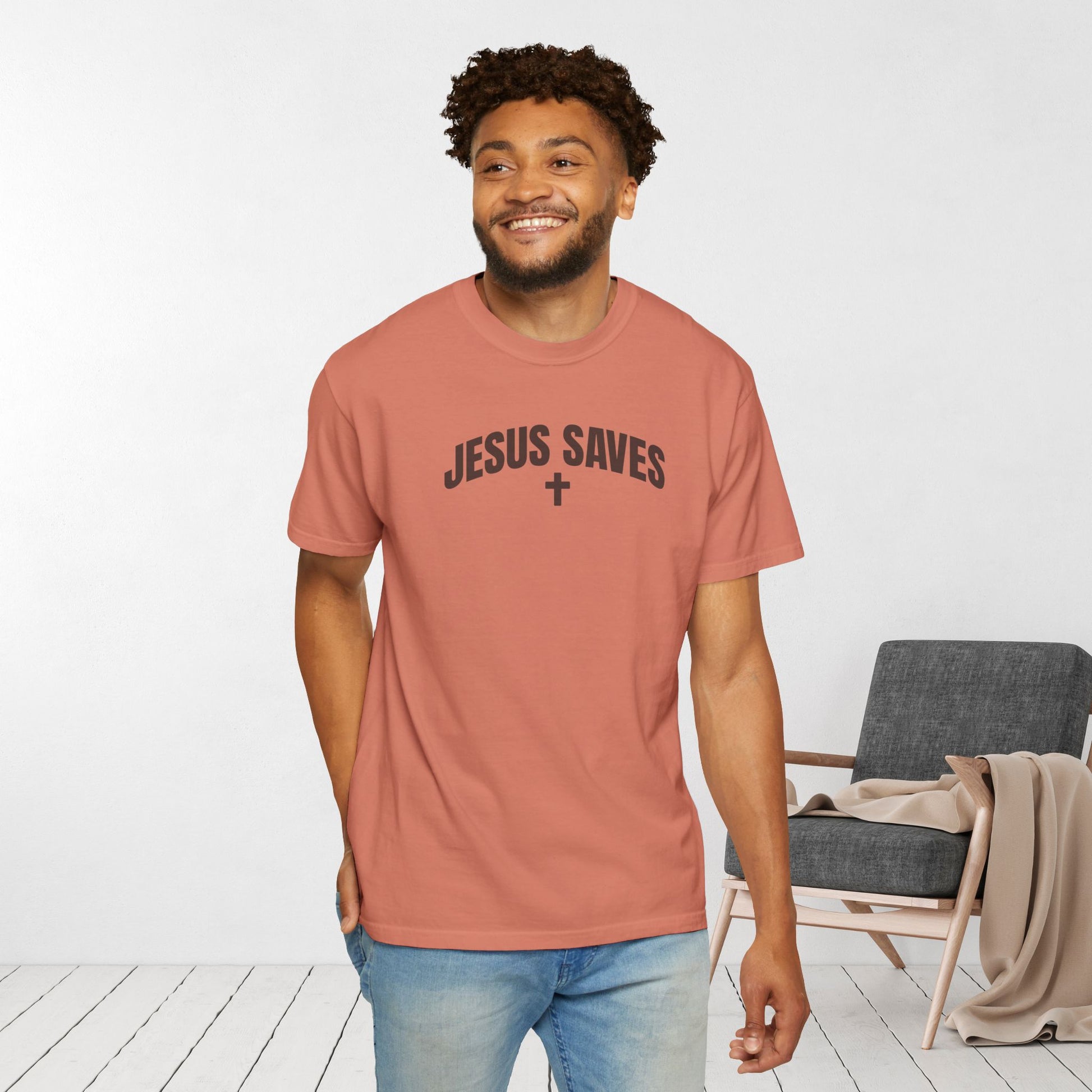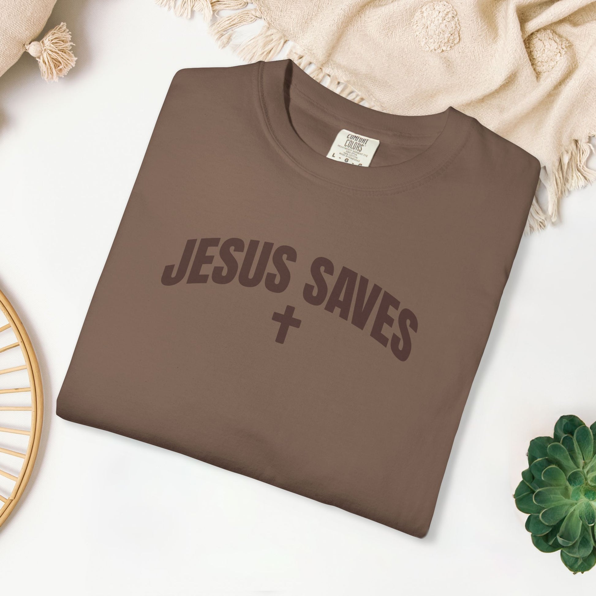 Carry the message of salvation wherever you go with our “Jesus Saves” Comfort Colors Tee, inspired by Acts 4:12: “Salvation is found in no one else, for there is no other name under heaven given to mankind by which we must be saved.”
