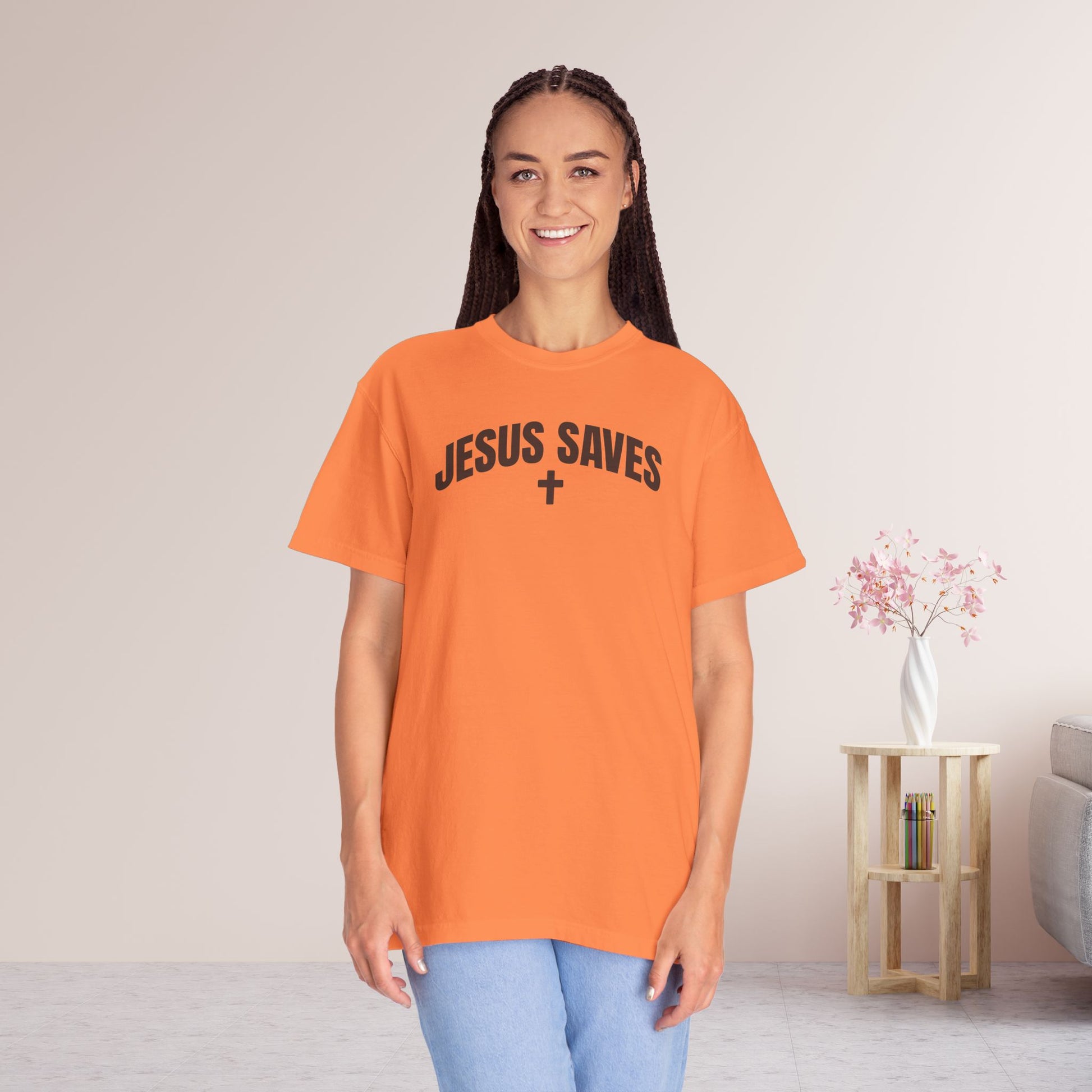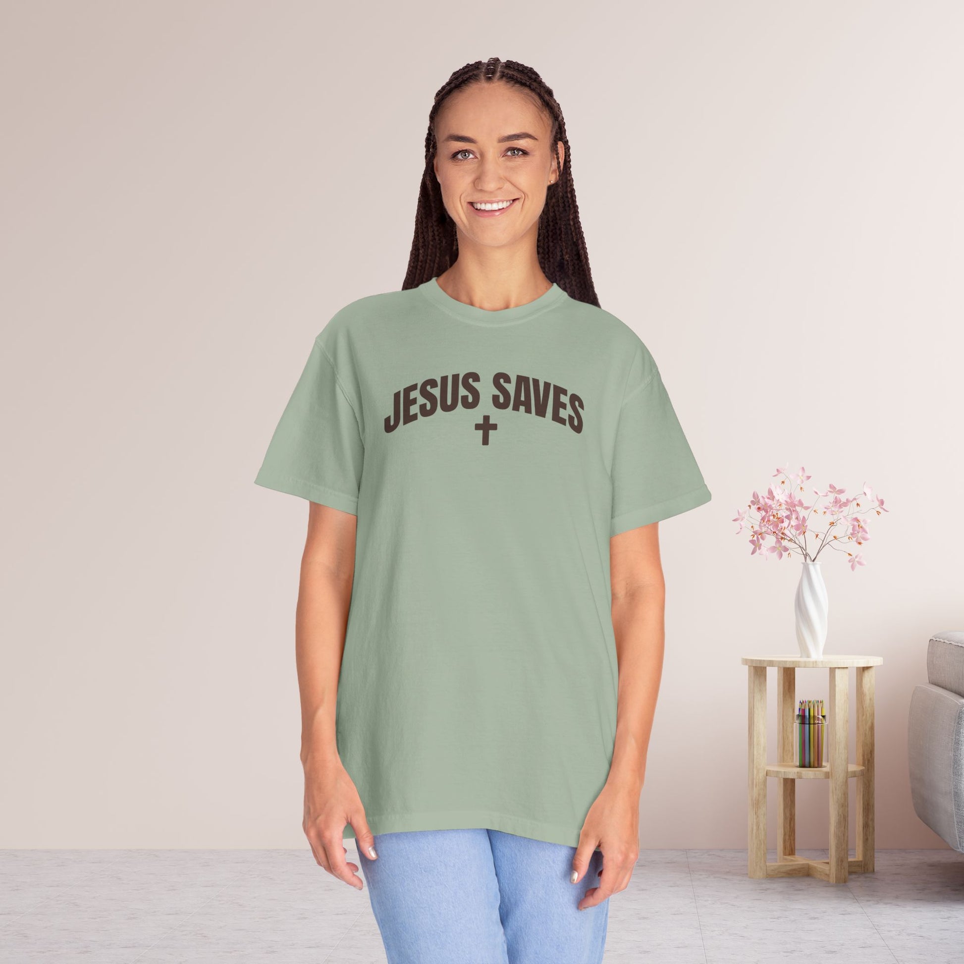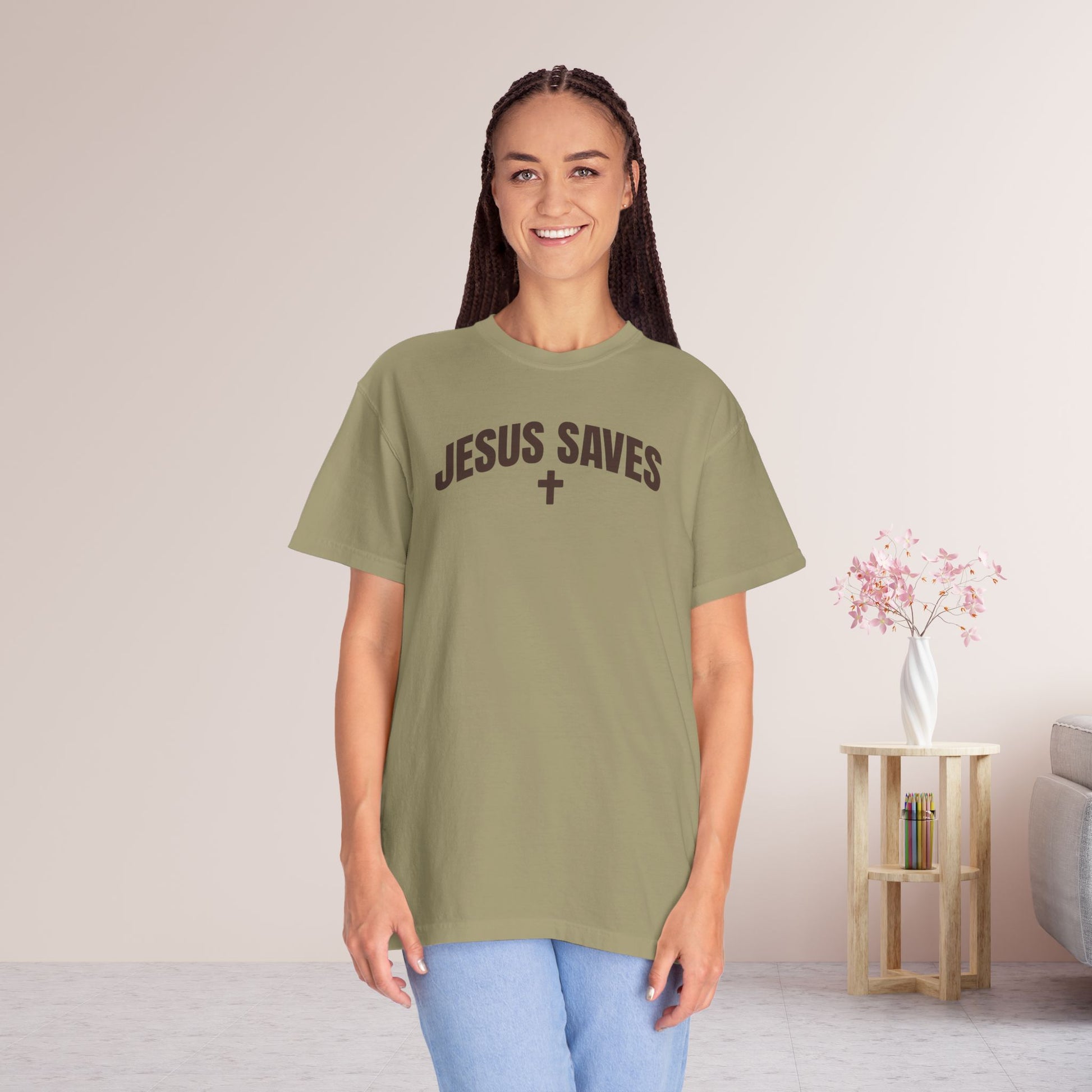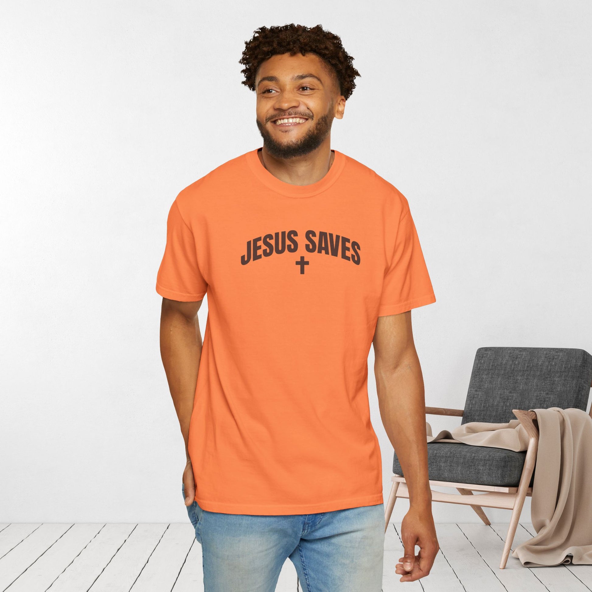 Carry the message of salvation wherever you go with our “Jesus Saves” Comfort Colors Tee, inspired by Acts 4:12: “Salvation is found in no one else, for there is no other name under heaven given to mankind by which we must be saved.”