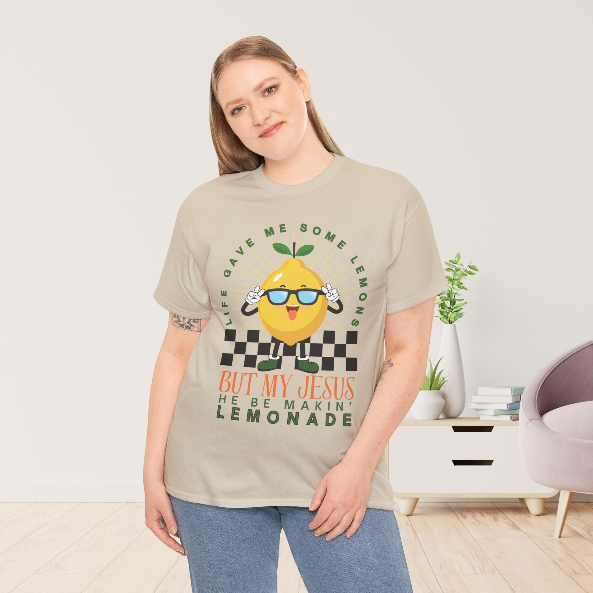 - Bold Faith Statement – “Life Gave Me Some Lemons But My Jesus Be Makin' Lemonade” inspires encouragement and joy.