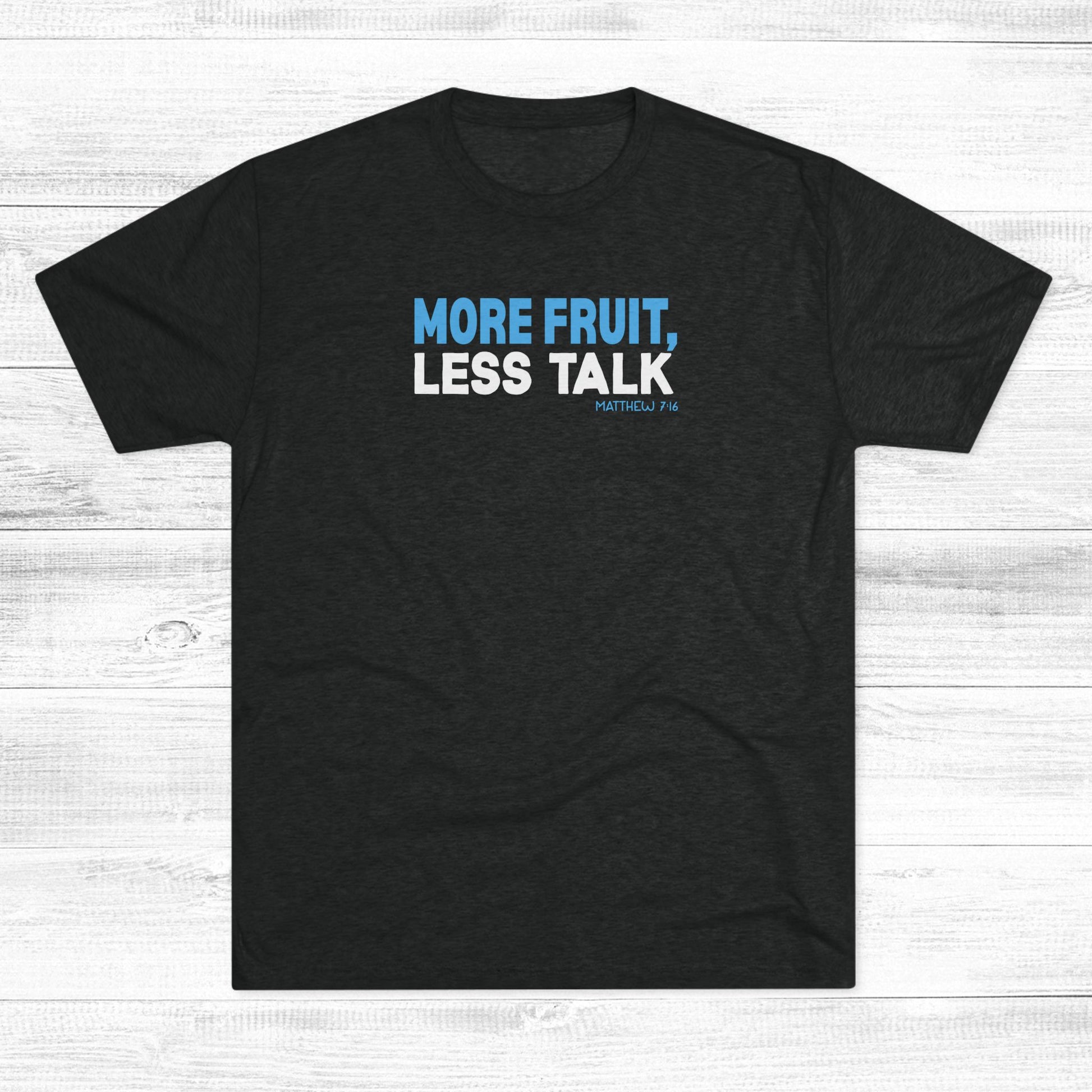 Show your faith through action with the “More Fruit, Less Talk” tee, part of our No Compromise Collection. This shirt encourages believers to demonstrate Christ-like character and godly deeds, rather than just talking about faith. It’s a bold reminder that true faith is measured by what we do, not just what we say.