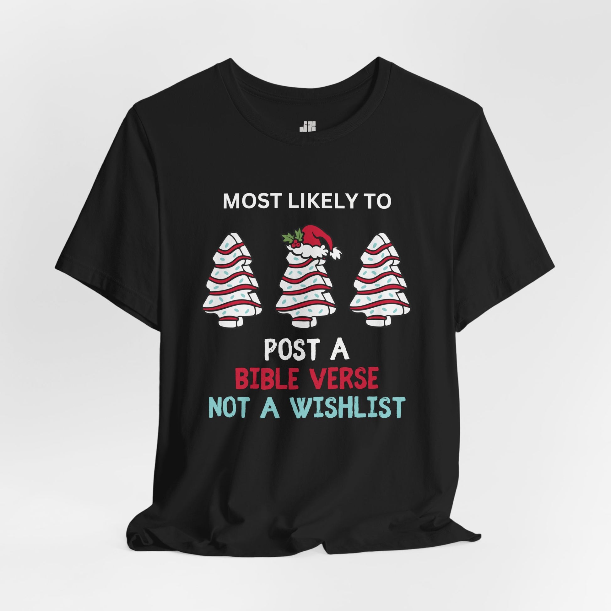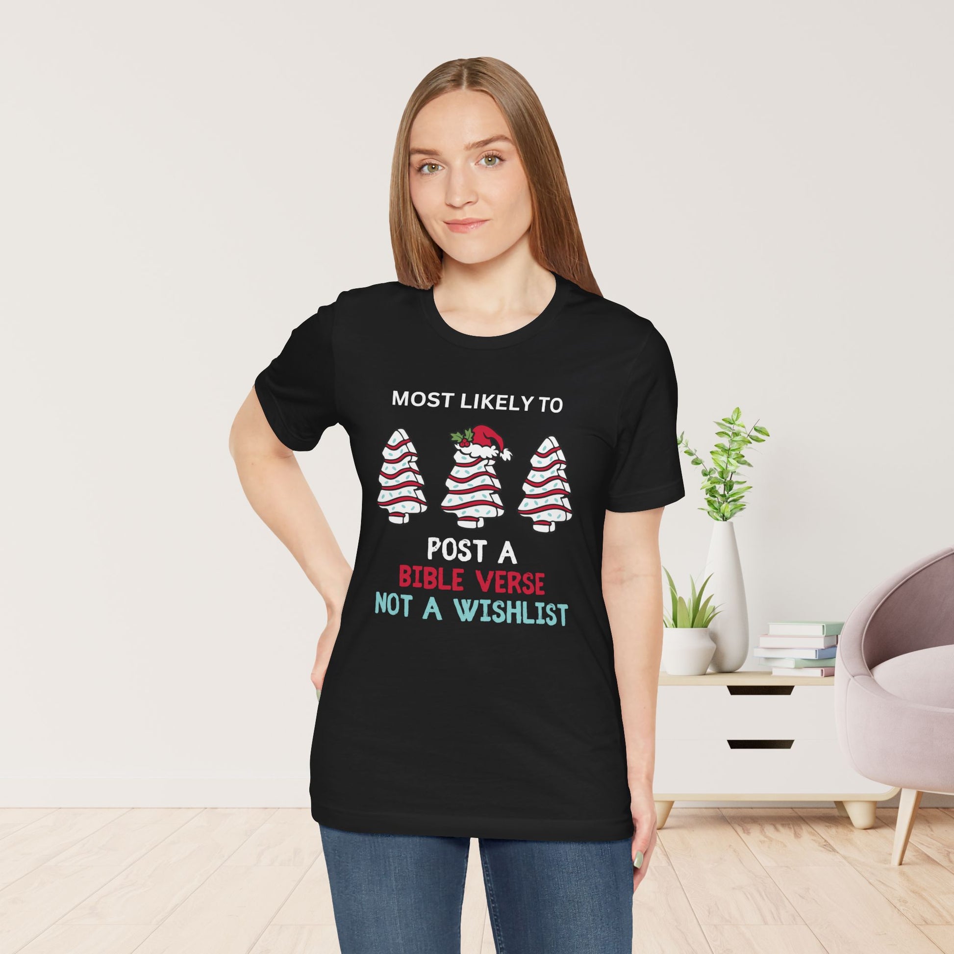 Most Likely to Post a Bible Verse Soft Cotton Tee - Most Likely to Christian Christmas Shirt