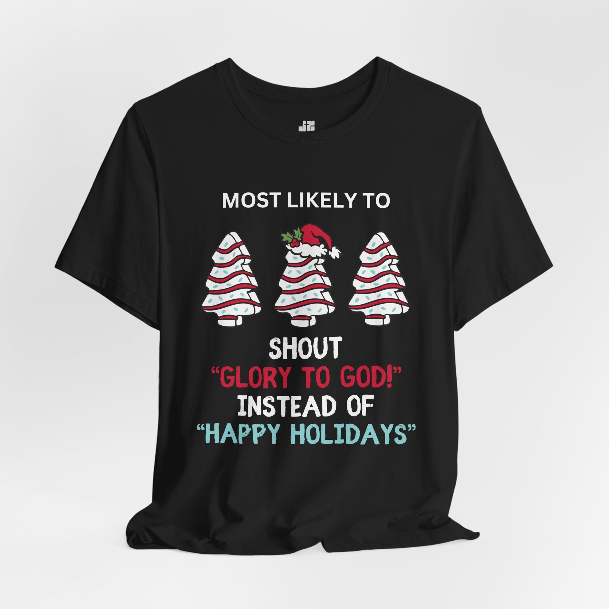 Most Likely to Shout Glory to God Soft Cotton Tee - Most Likely to Christian Christmas Shirt