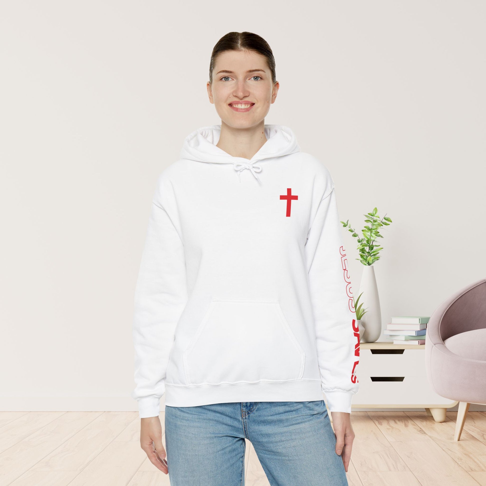 The back of the hoodie features the uplifting message "My Lifeguard Walks on Water," symbolizing the strength and reassurance found in trusting Jesus, our ultimate protector. Whether you're lounging at home or heading out for a casual day, this hoodie offers both comfort and inspiration.