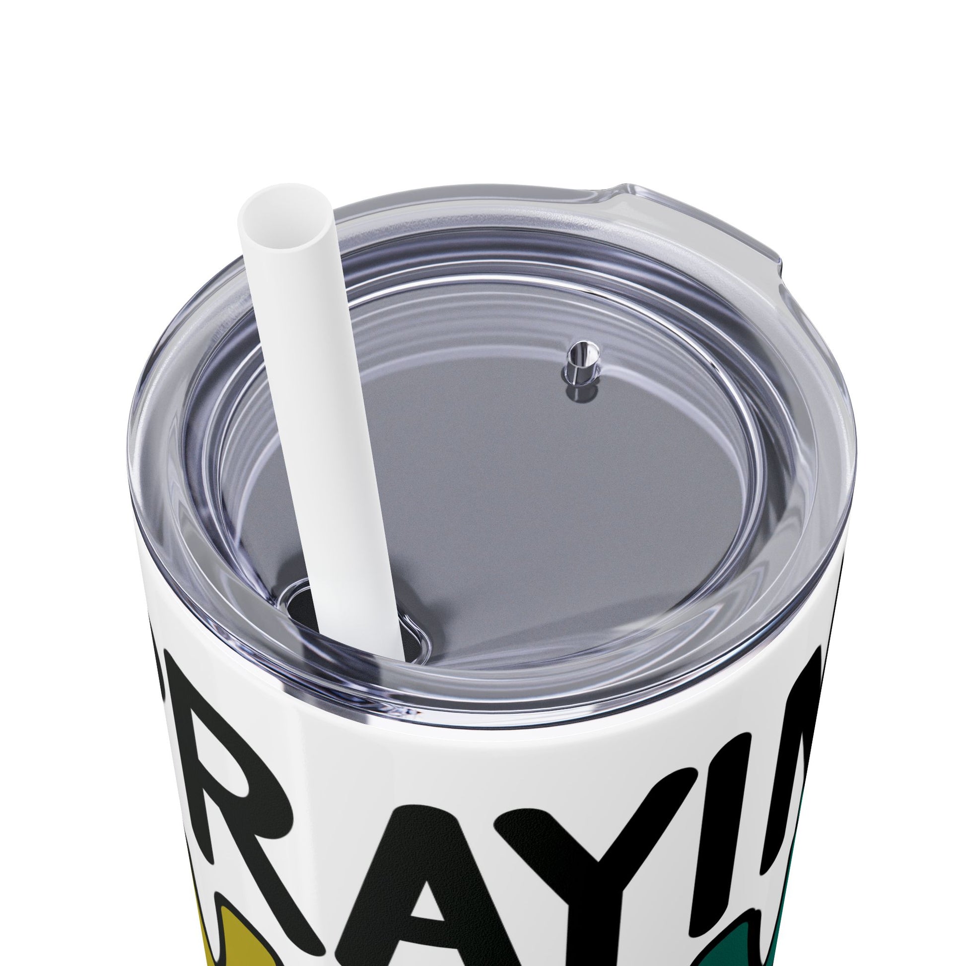 - Clear plastic press-on lid with a color-matching straw